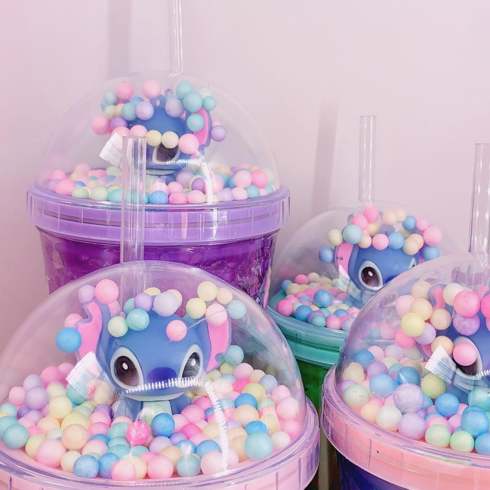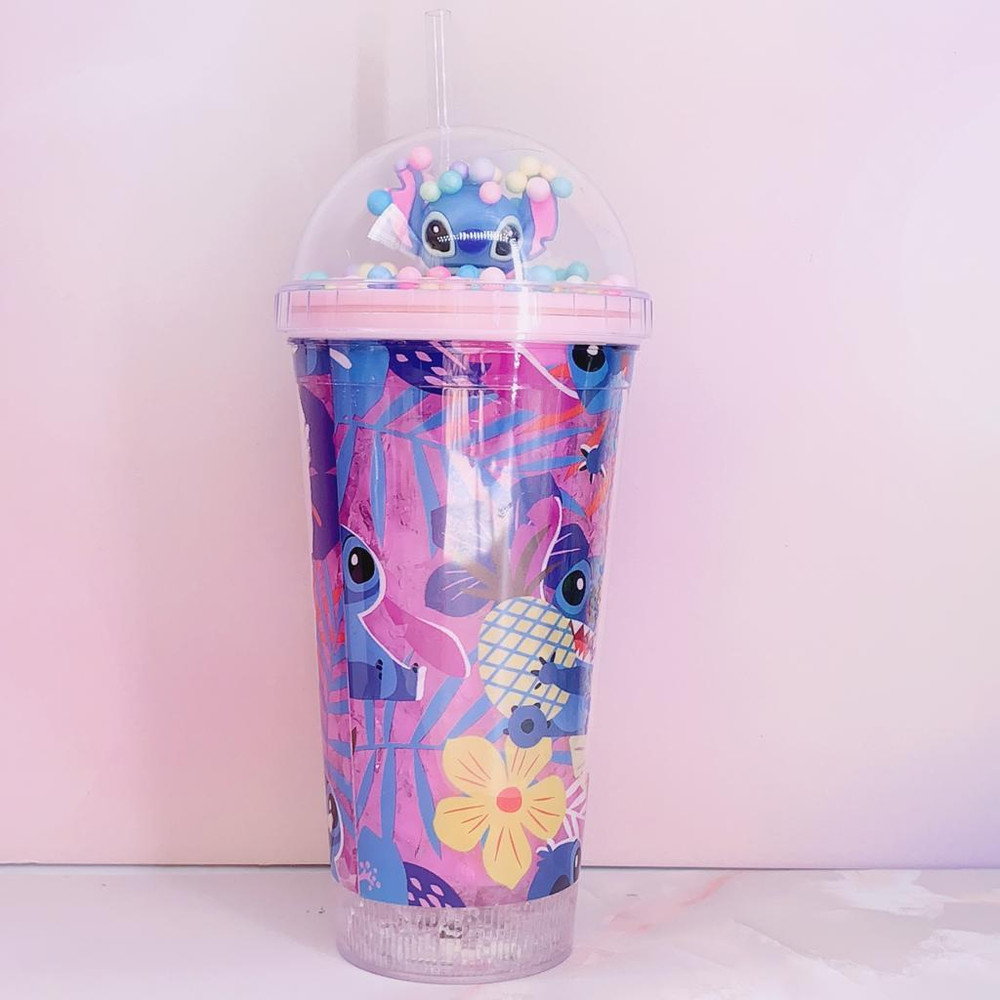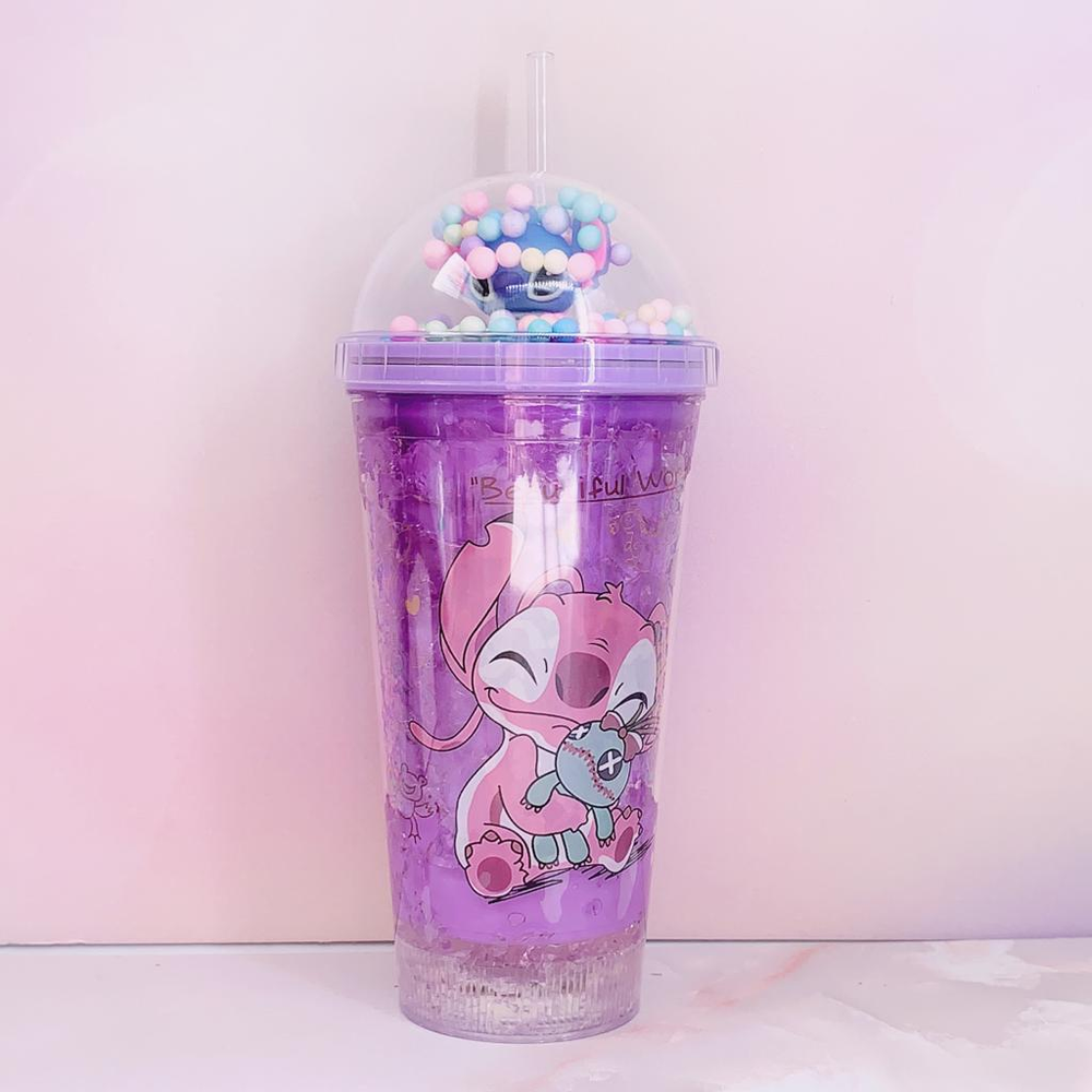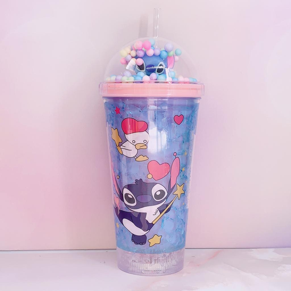 Vaso Acrilico Stich Con Tapa Gel Refrigerante y sorbete