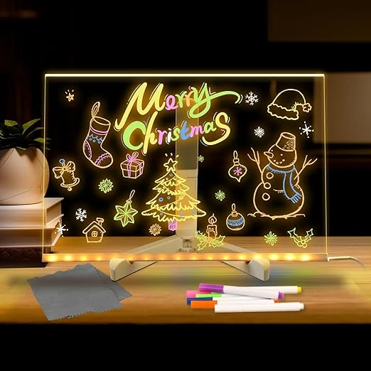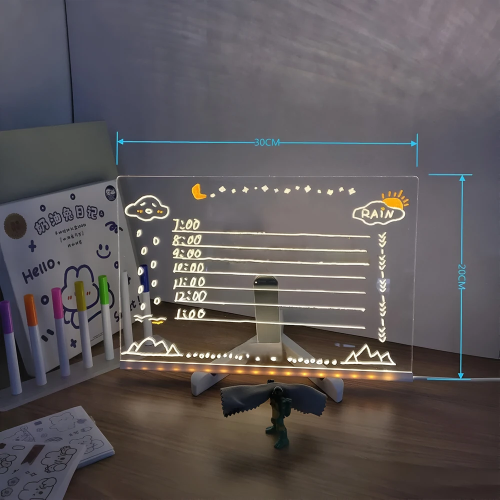 (El producto contiene un cable USB, 7 fibrones de colores, un soporte y una pizarra LED. Puedes utilizarlo como tablero de planificación, notas, calendario o como mas te guste. El soporte es ajustable y es fácil de limpiar).