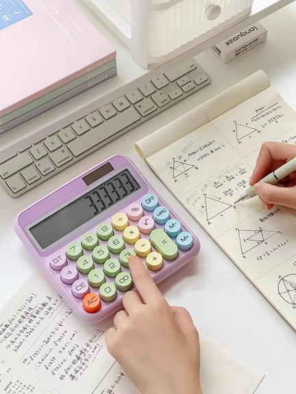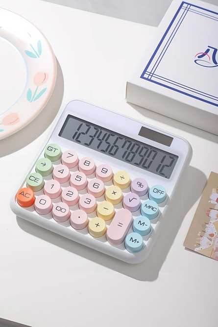 (Calculadoras Solar Pasteles de 12 dígitos, diseños redondeados con botones de diferentes colores pasteles, para uso interior oscuro se debe utilizar 1 pila AAA).