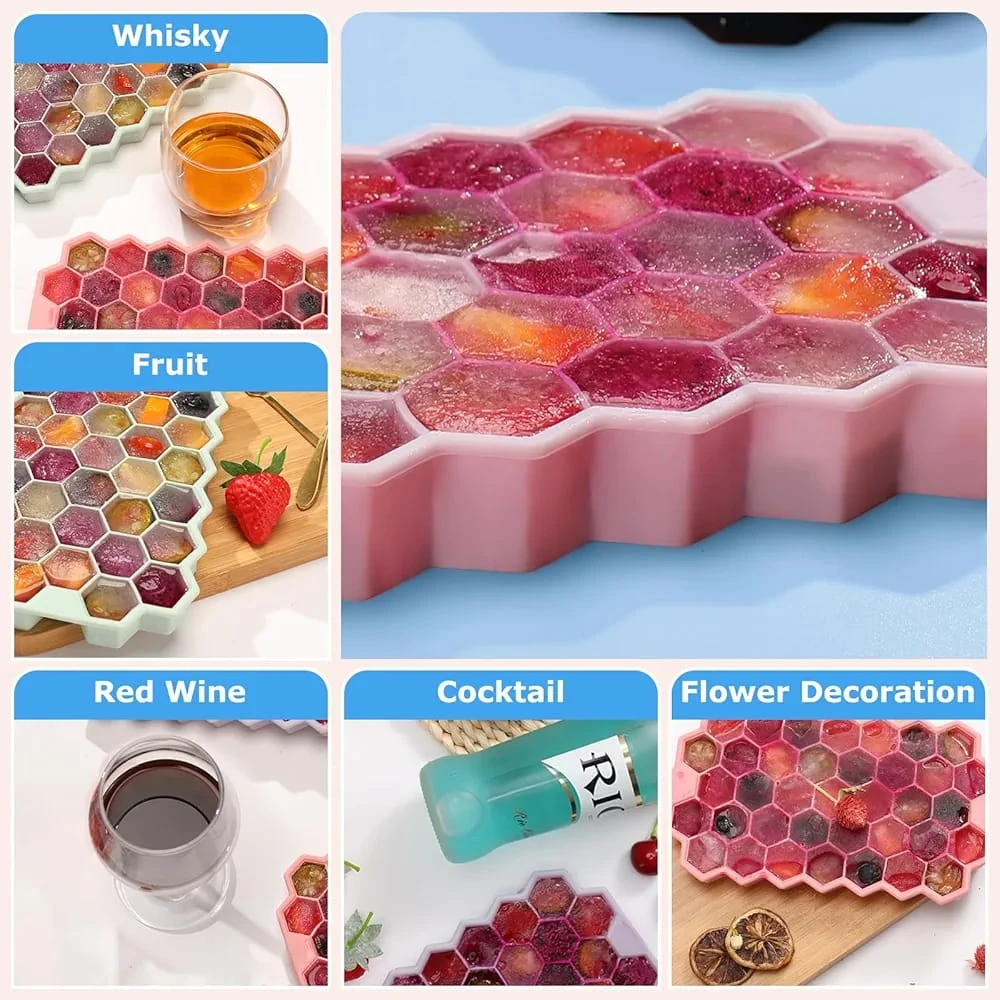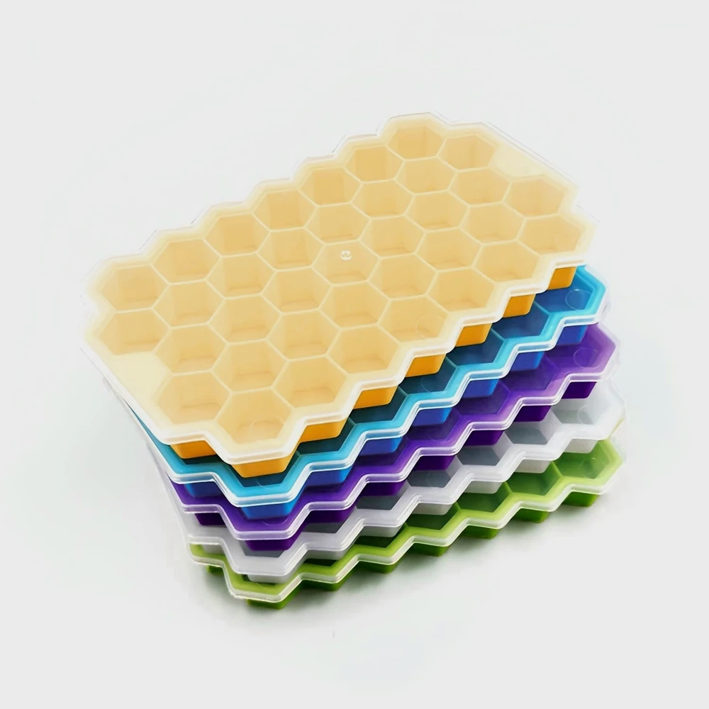 (Cubetera de hielo con diseño de hexágonos. Cuenta con una capacidad de 37 hielos. Ideal para llenarlo con agua, jugo, gelatina o lo que más gustes).