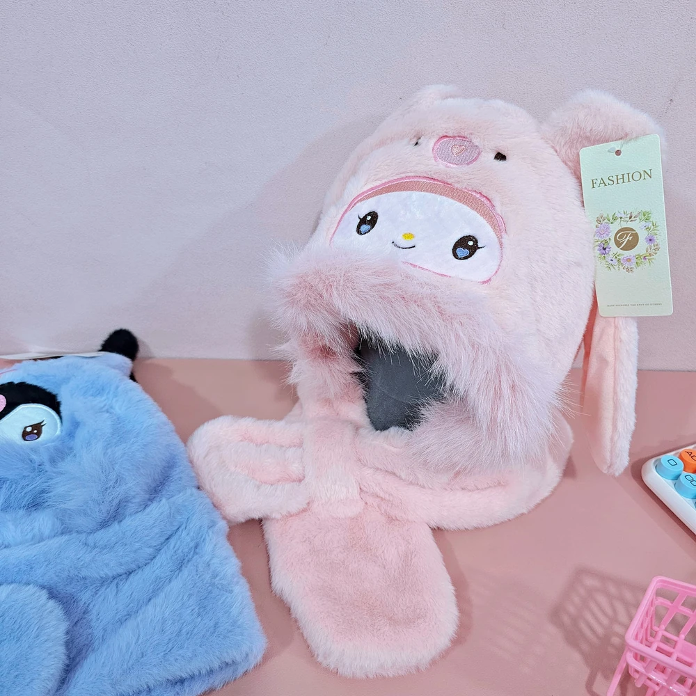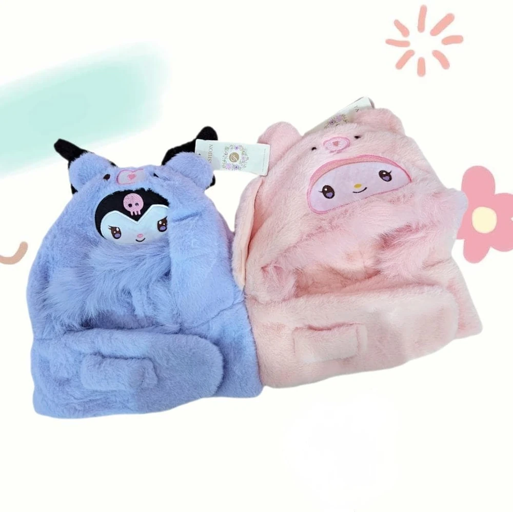 (Gorro de tela super suave y abrigada con temática de "My Melody" y "Kuromi", ideal para el invierno).