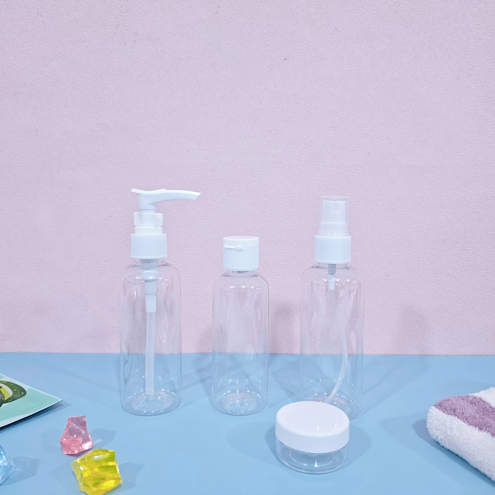 (Cada set cuenta con un dispensador, un rociador, un frasco y un pote para cremas . Ideal para viajes y uso diario).