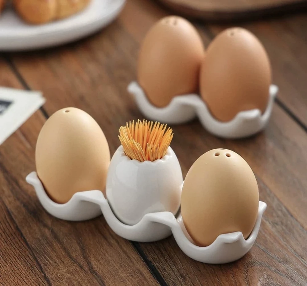 (Set de especiero x2U. y porta escarbadientes en forma de huevo, viene con una base . Ideal para uso Diario).