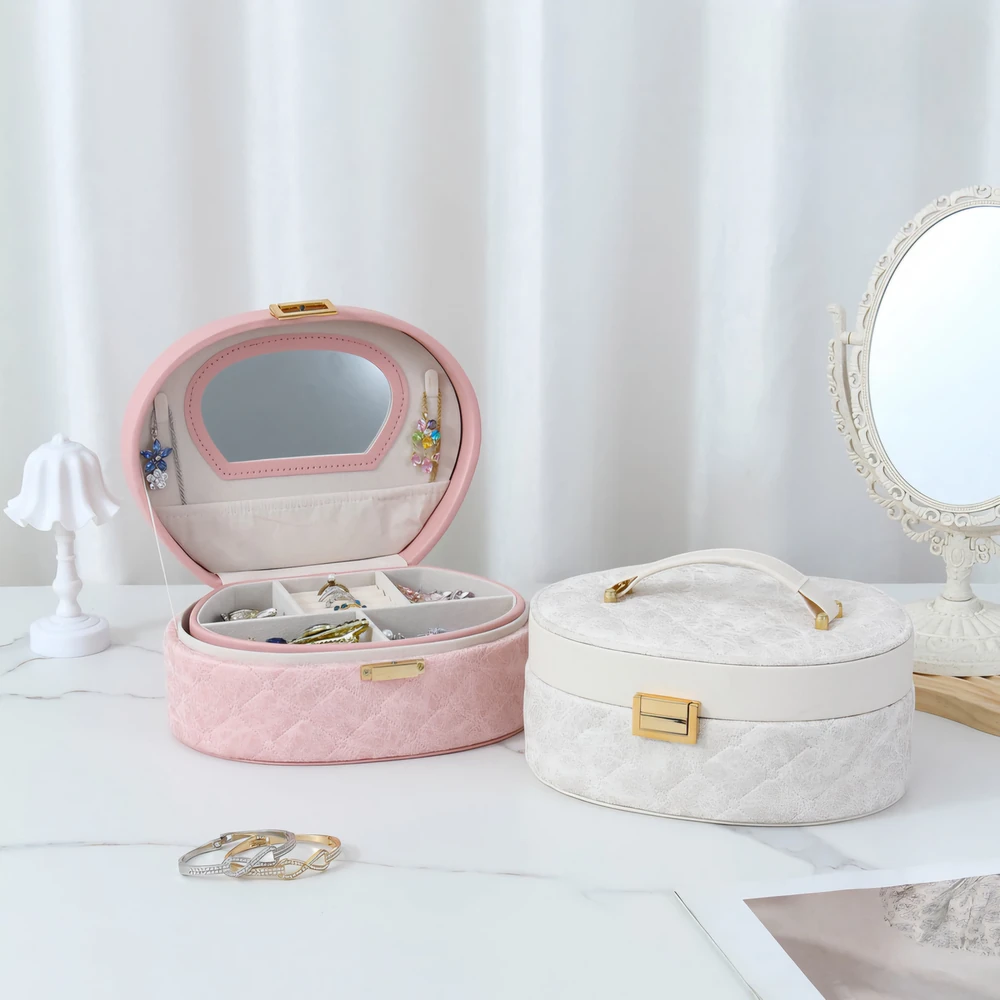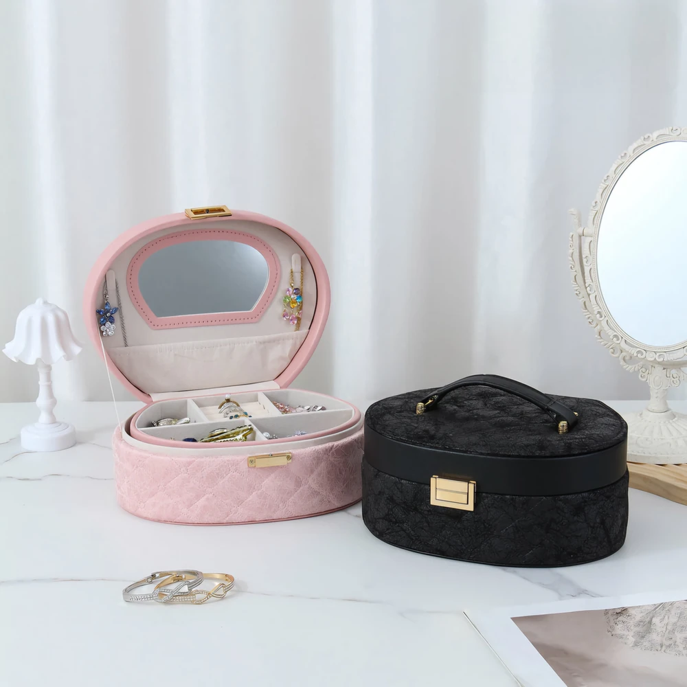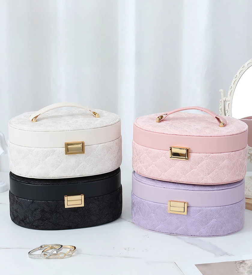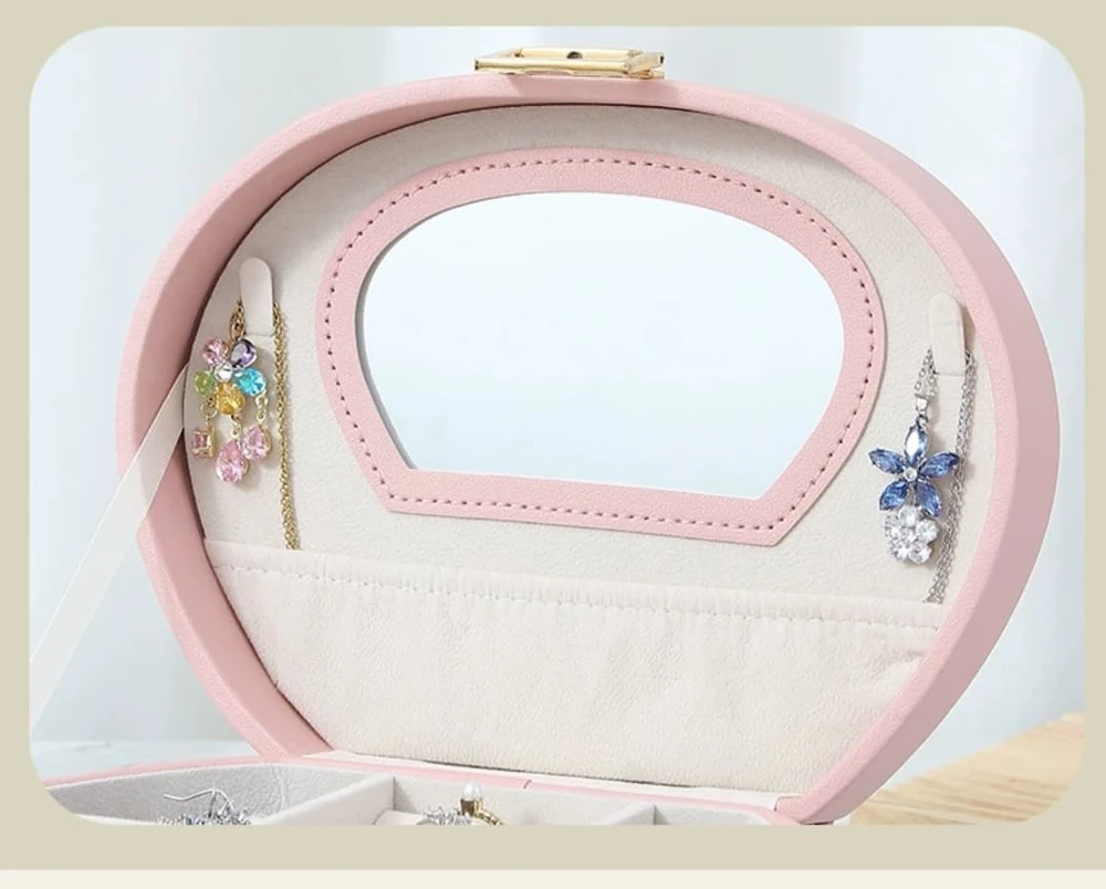(Joyero con dos bases, una removible, ambas con mucho espacio para resolver sus molestias y dejar de preocuparse por no encontrar sus joyas. Cuenta con un espejo en su tapa y vienen tres opciones diferentes).