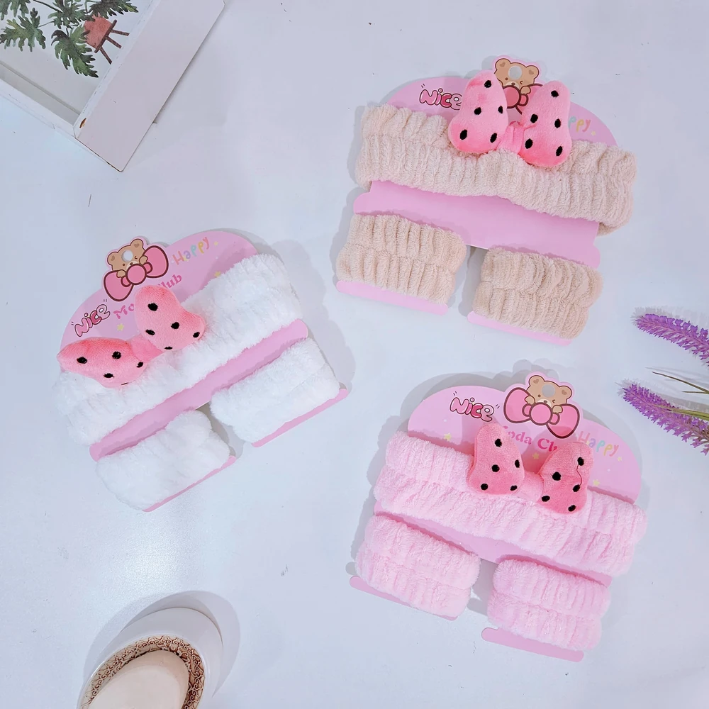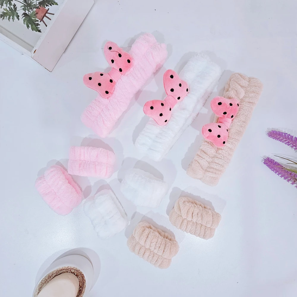 (Set de vincha de skincare y muñequeras para mantener el cabello alejado de la cara, especialmente útil durante rutinas de cuidado facial, maquillaje, o al lavarse la cara. También pueden ser un accesorio de moda para complementar un peinado. Las muñequeras evitan que el agua gotee hacia las manos o la cara durante la rutina de belleza).