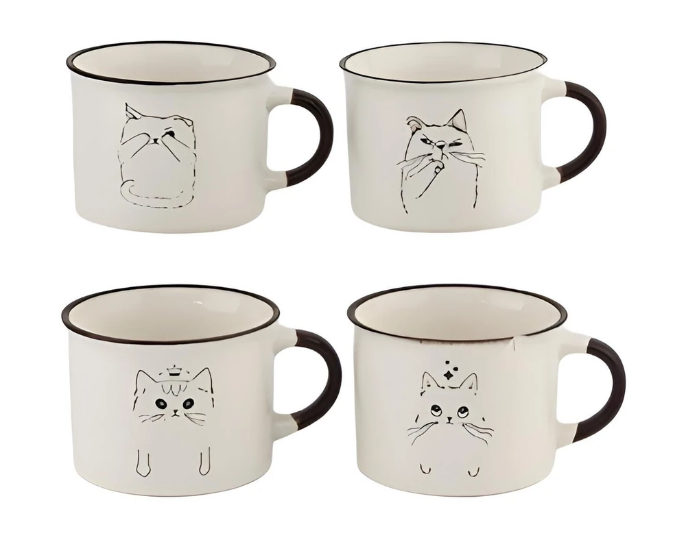 (Taza de Porcelana en 4 diseños diferentes de gatitos super delicados y especial para tomar algo caliente).