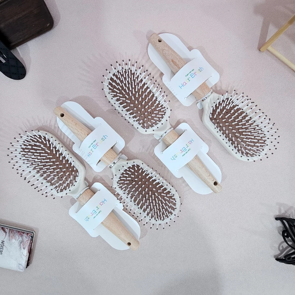 (Cepillo para el cabello con cojín, minimalista, previene la estática, cepillo de masaje para desenredar con mango de madera para peluquería en casa, ovalado).