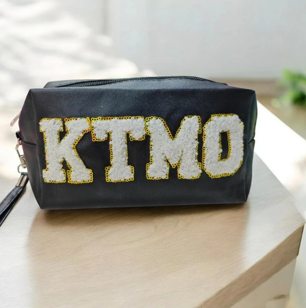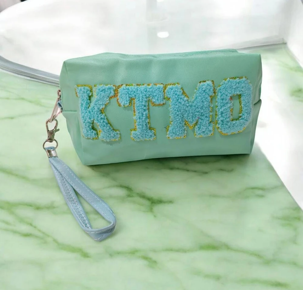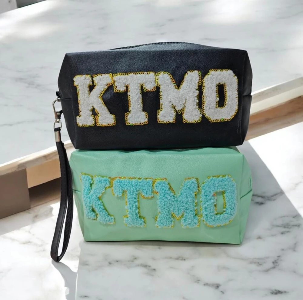 Cartuchera escolar. Varios colores. Es de cuero y las letras en peluchito,