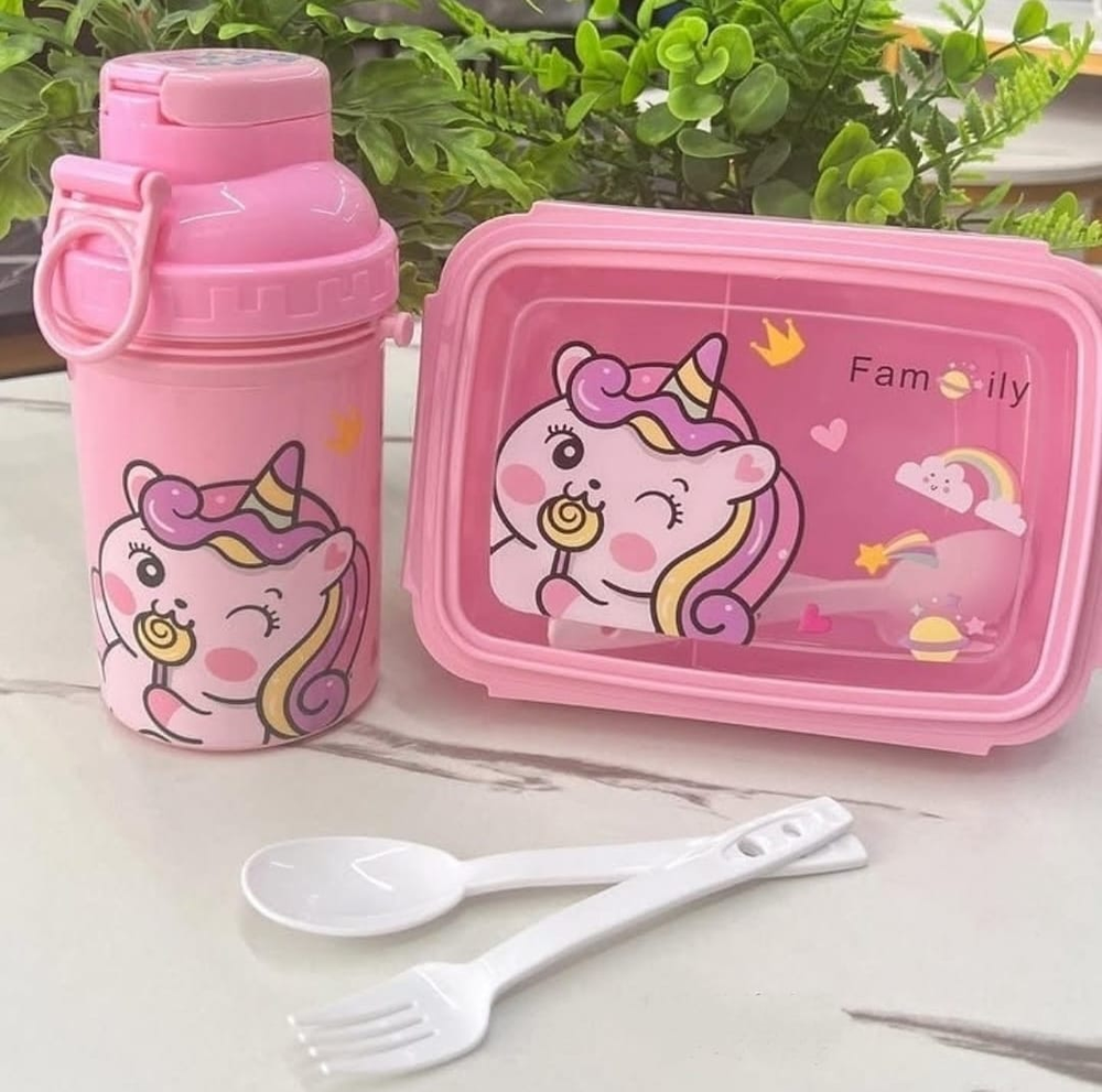 Lunchera de dos pisos incluye cuchara tenedor y un vaso con tapa Lunchera 19*13cm Vaso 500ml