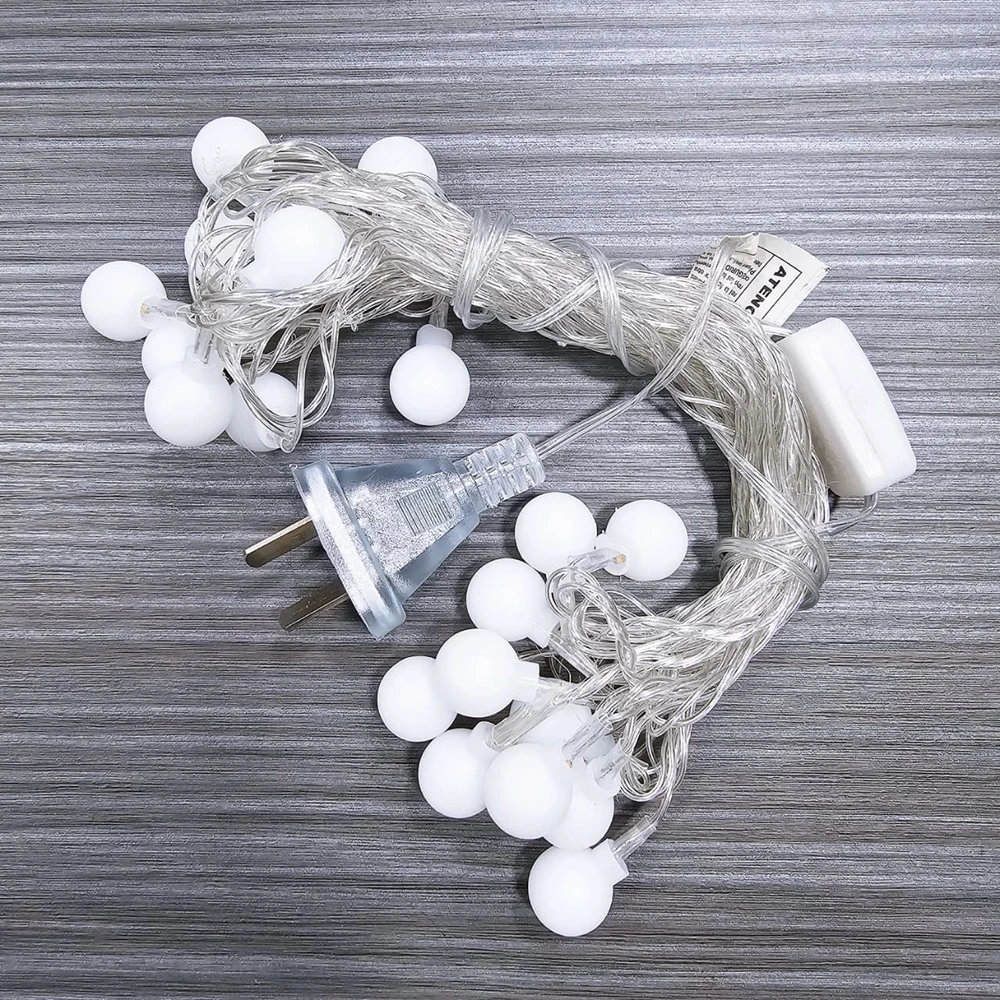 (La Guirnalda de Esferas LED, con un total de 20 esferas, cuenta con enchufe , es ideal para decorar todo tipo de eventos, casamientos, cumpleaños, hogar, negocio o lo que quieras).