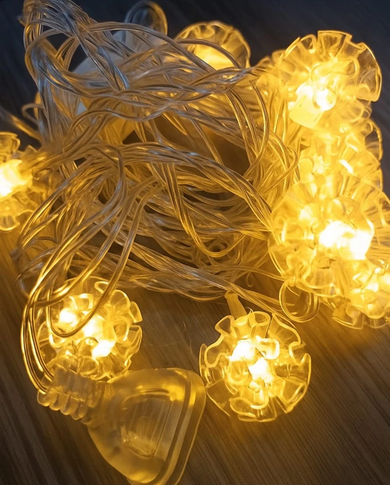 (Cuenta con 10 luces LED de tonalidad cálida. Posee un enchufe como fuente de alimentación y también un alargue. Ideal para decorar tu hogar, oficina, comercio, etc).