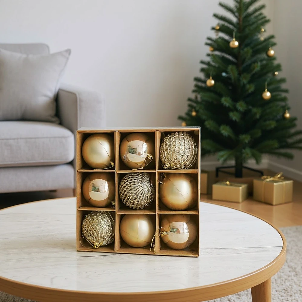 (Cada caja cuenta con 9 esferas navideñas de color matte y brilloso. Ideal para decorar el árbol de navidad, el diámetro de cada esfera es de 8cm).