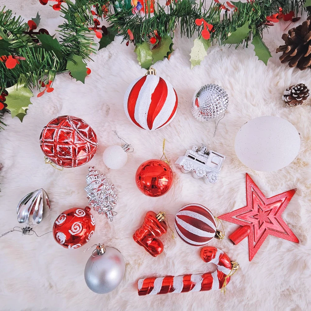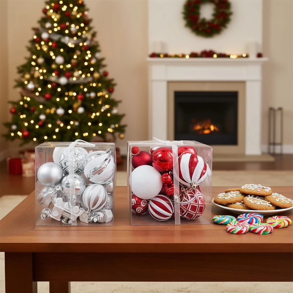 (Caja x 25U. Adornos navideños con diferentes tamaños y diseños en glitter, matte y brillantes. Ideal para decorar tu arbolito)