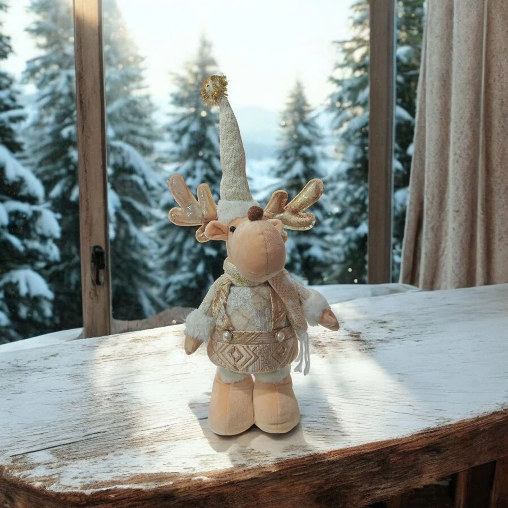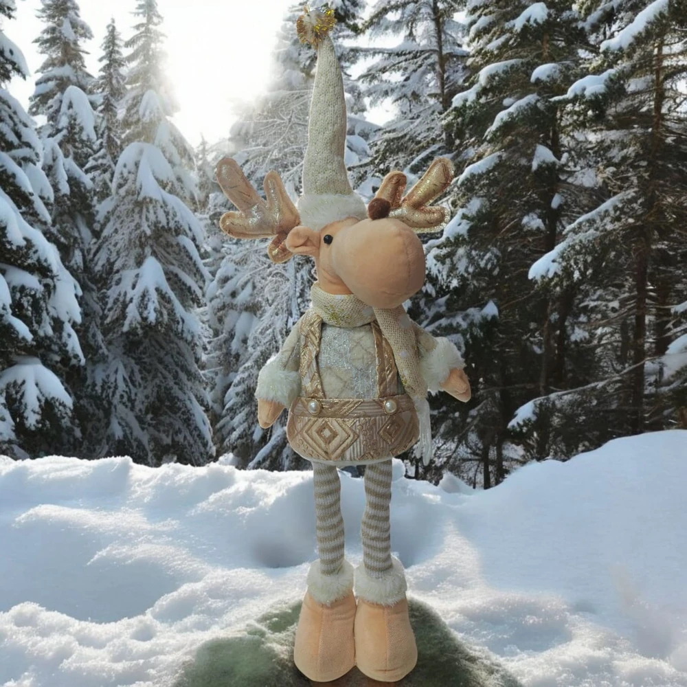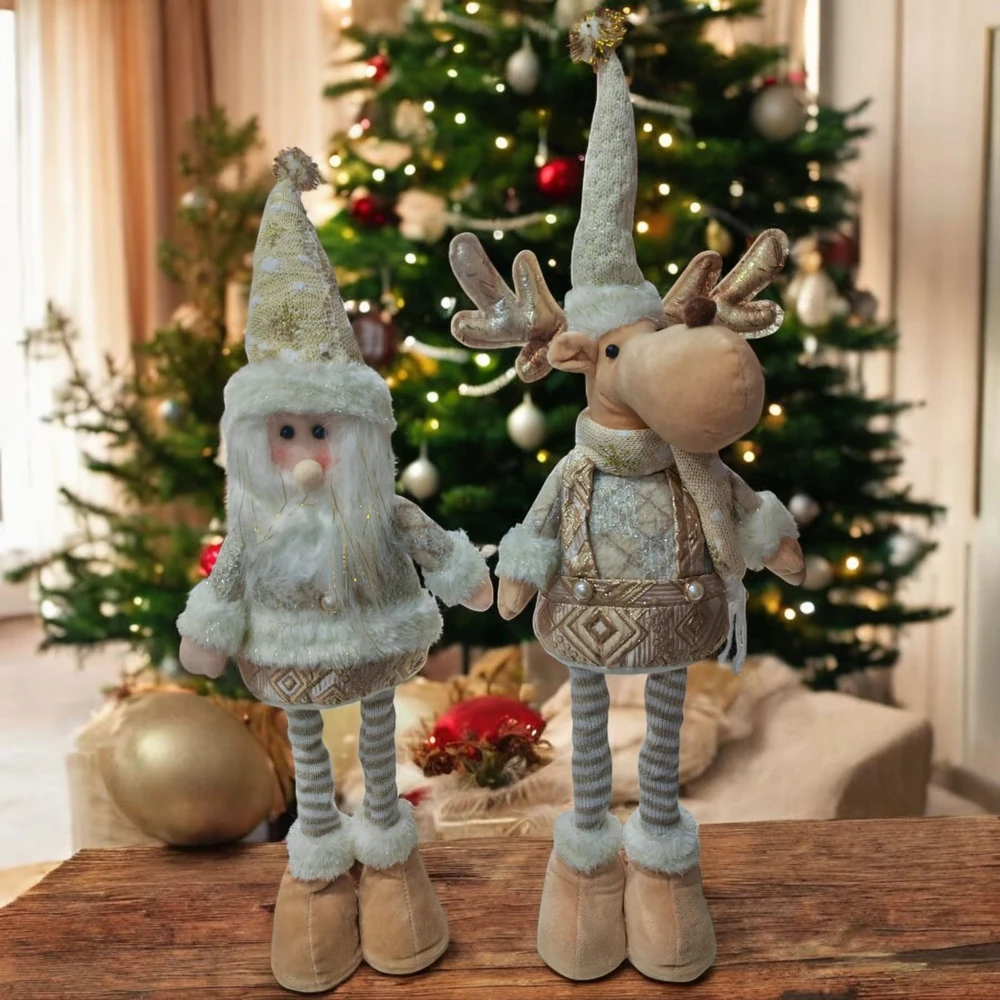 Papa Noel y Alce plegable es ideal para decorar mesas, estantes o el arbolito. Se pliega facilmente para guardar y reutilizar cada año.