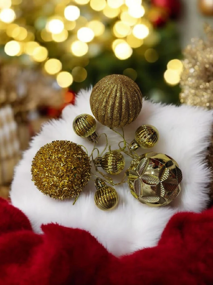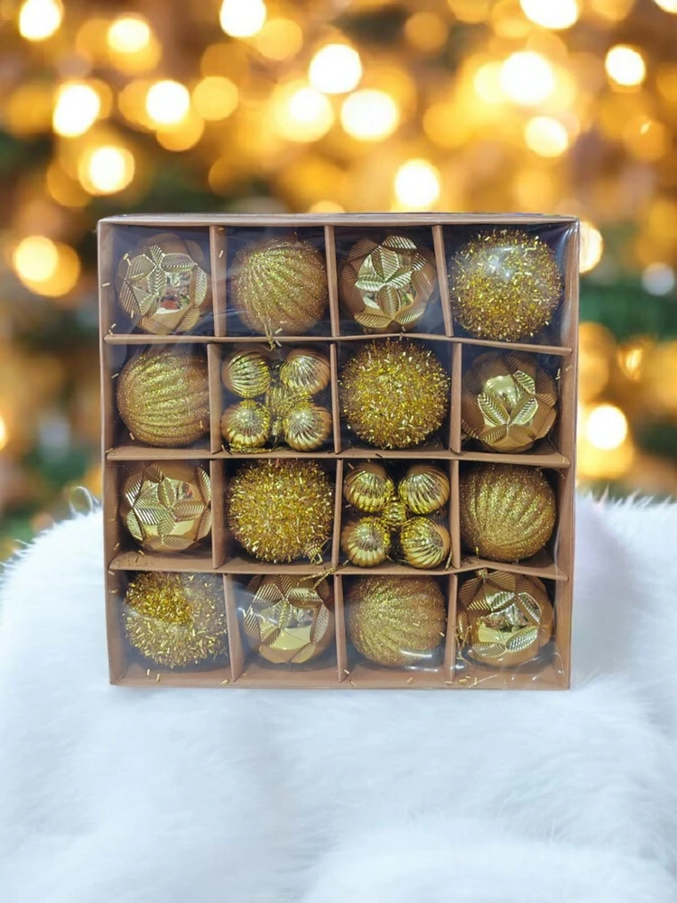 Decoracion para el arbol navideño, 14 bolas grandes con distintas texturas y muy brillantes tambien 16 bolitas chiquitas.