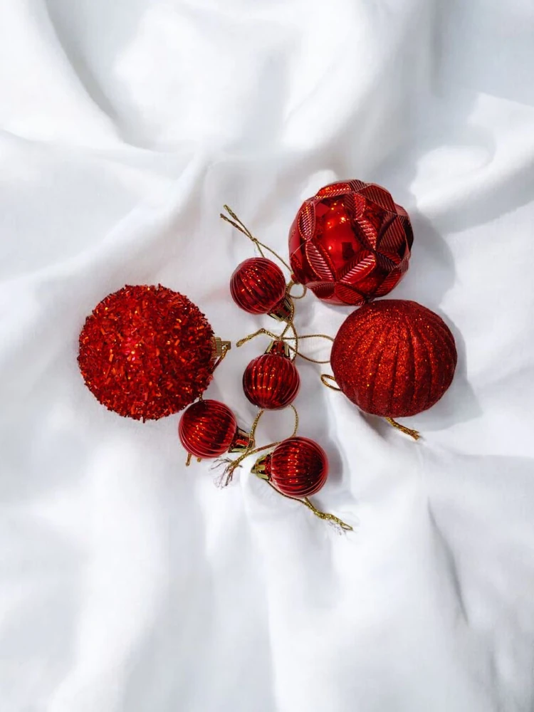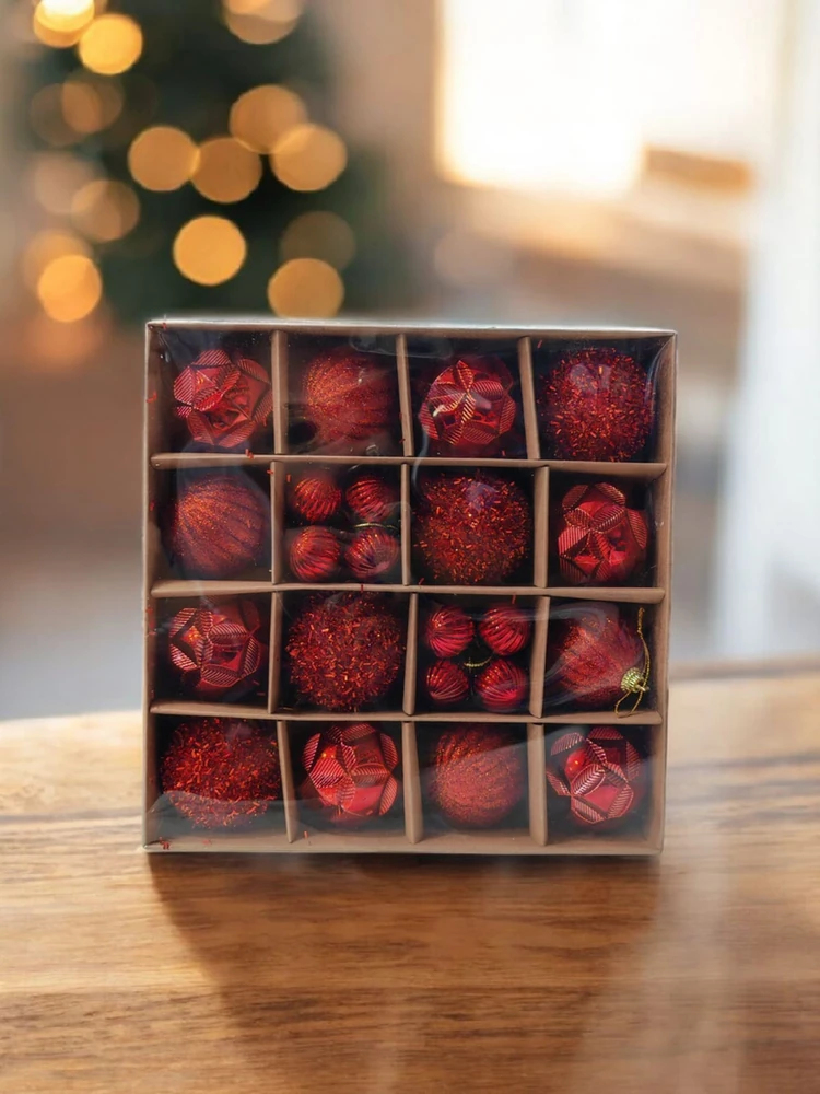 Decoracion para arbol navideño, vienen 14 bolitas grandes con distintas texturas y 16 bolitas chiquitas.