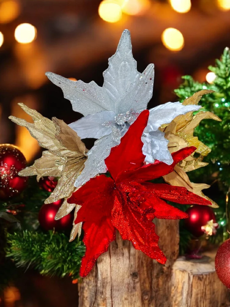 Flores decorativas para decorar el arbol navideño o con la compra de varias hacer un ramo y hacer un centro de mesa o algun rincon del hogar