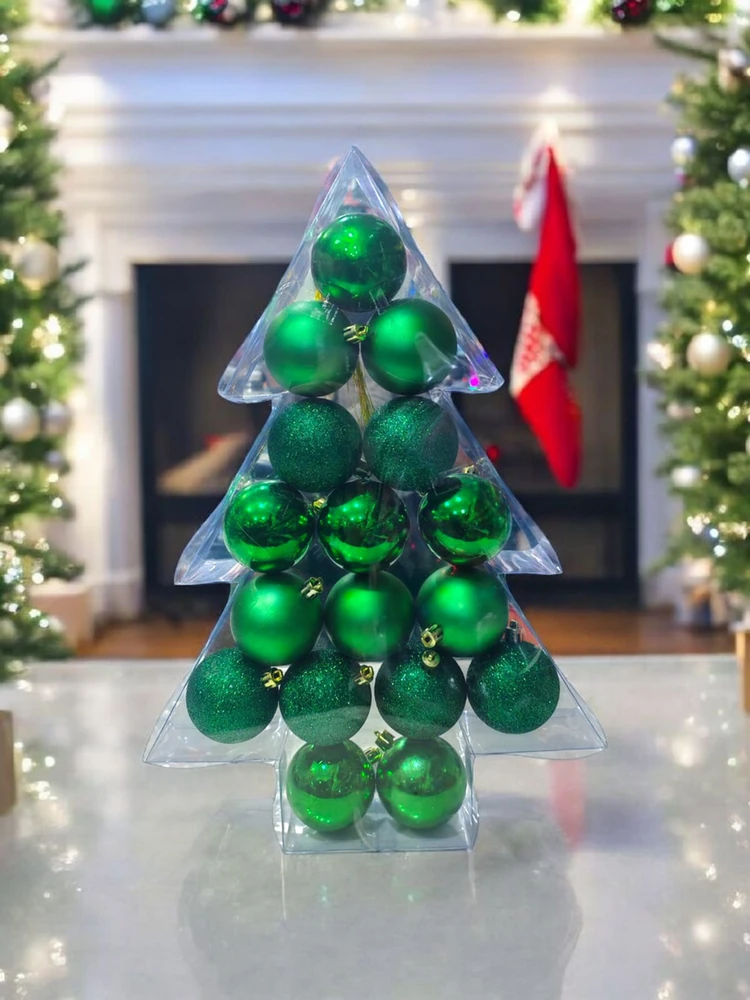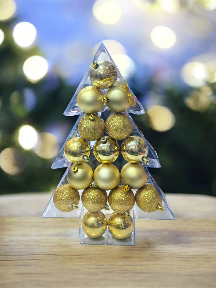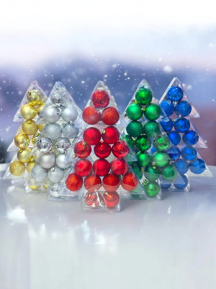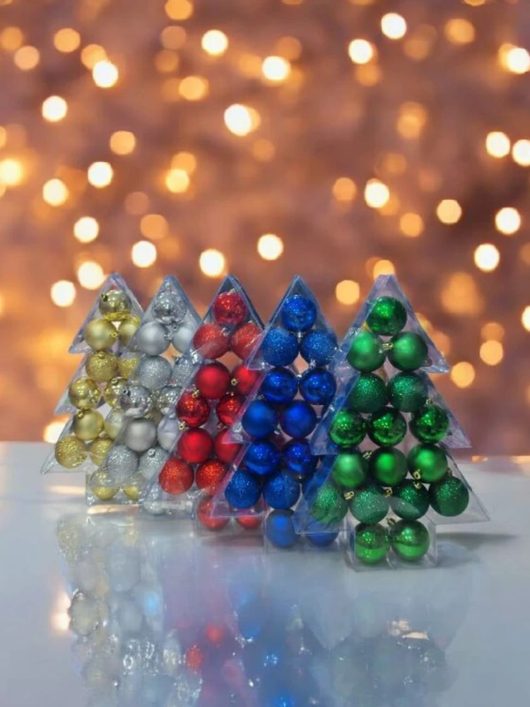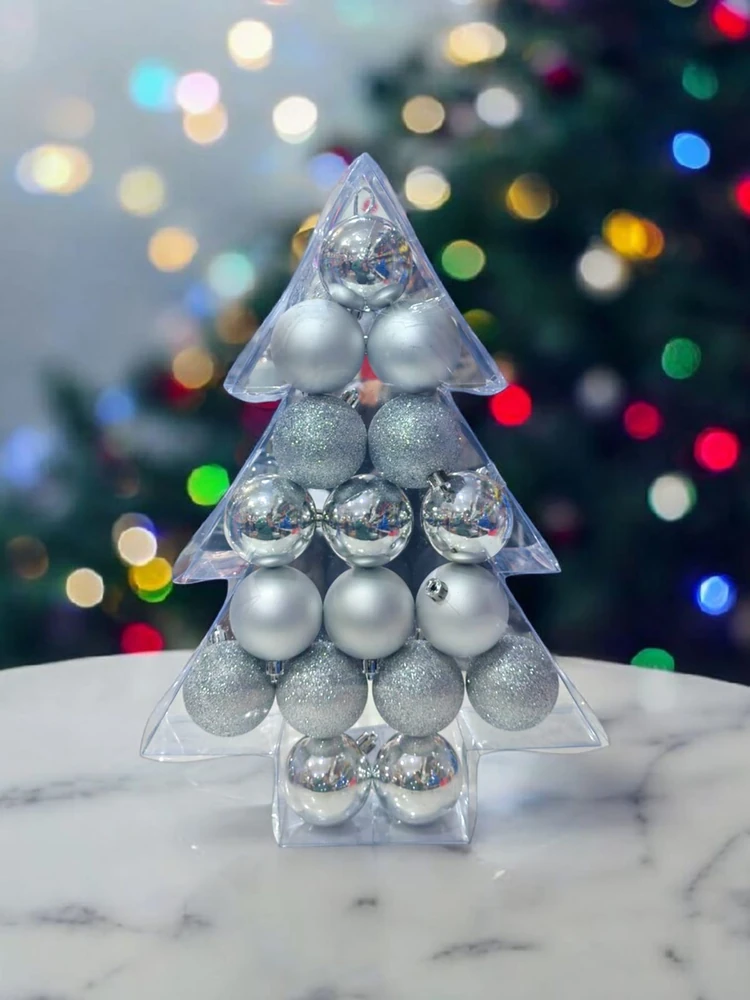 Bolitas opacas, platinadas y con glitter. Ideal para decorar el arbol de navidad.