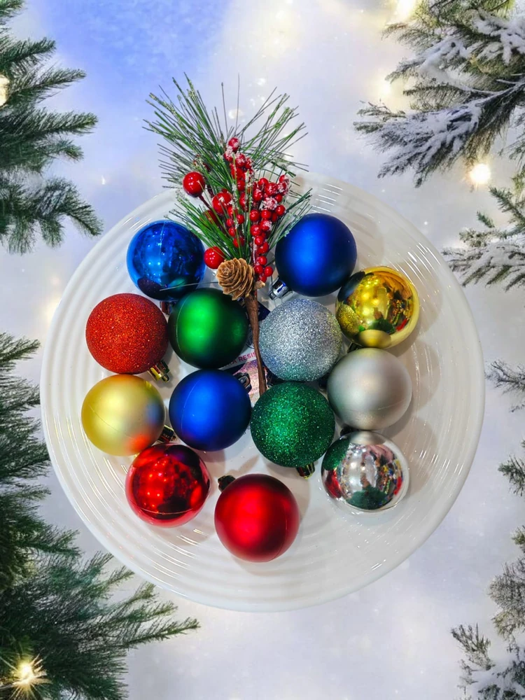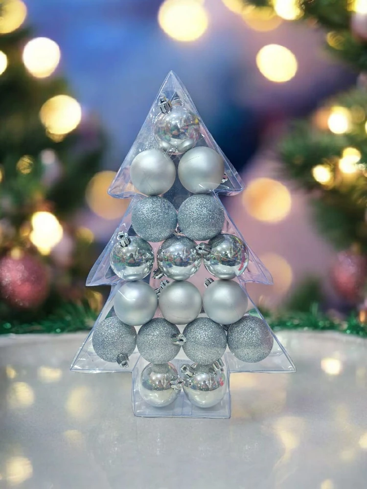 Bolas para el arboo navideño, con glitter, platinadas y opacas. Ideal para que quede bien llamativo y luminoso.