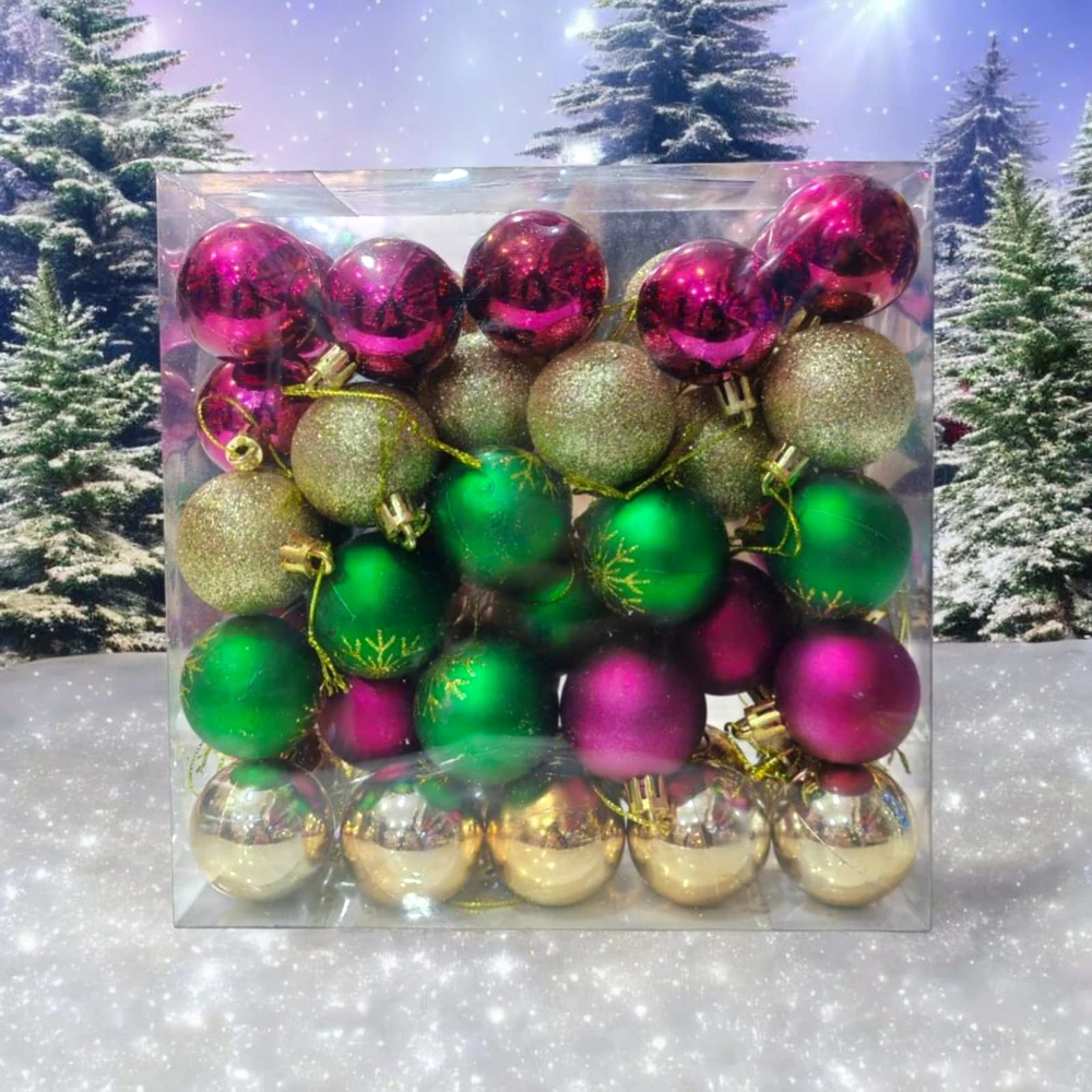 Bolitas decorativas para el arbol navideño, con chquitas y de un color distinto para salir de los colores tradicionales.