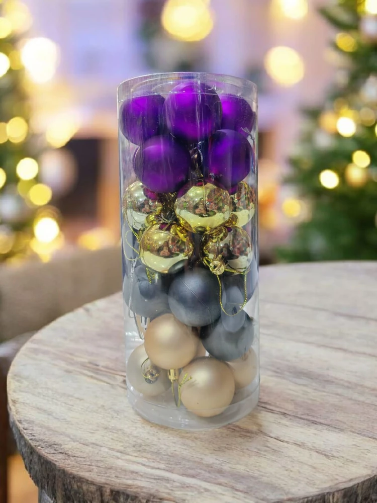 Bolitas decorativas para el arbol de navidad, vienen violetas opacas, doradas platinadas, negras opacas y doradas opacas. Para que tenga otros colores y no los tradicionales.
