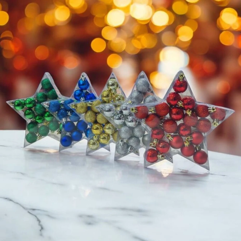 Bolitas pequeñas para decorar un arbol chico, quedan lindas y delicadas. Para que el arbol este luminoso y llamativo.