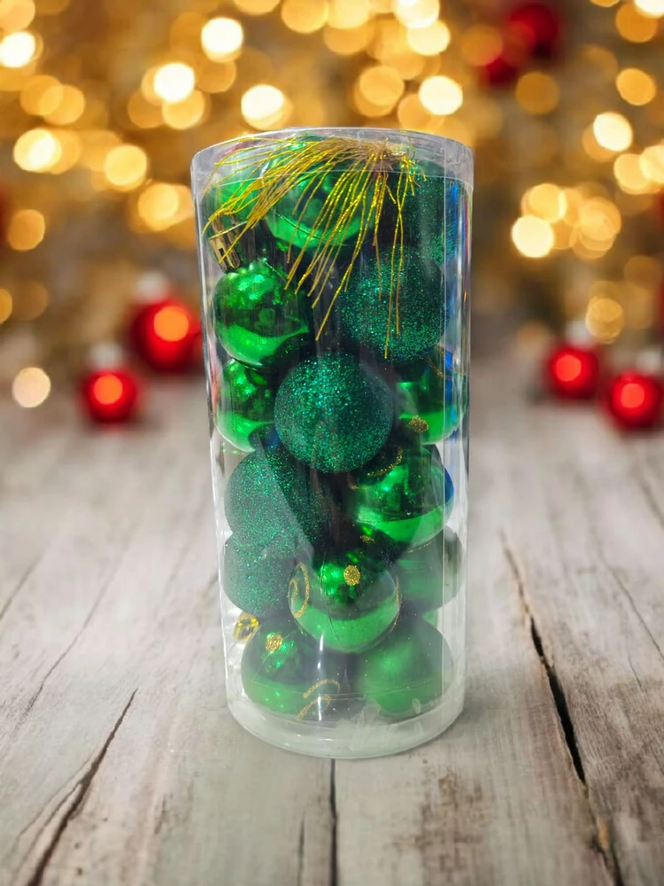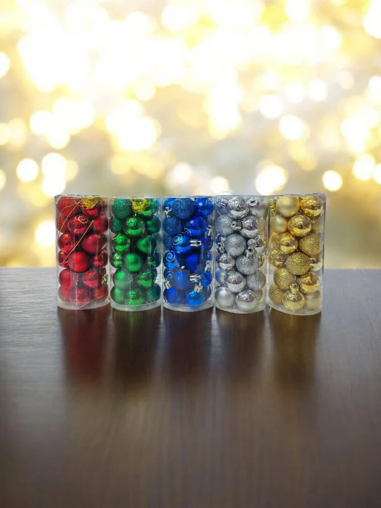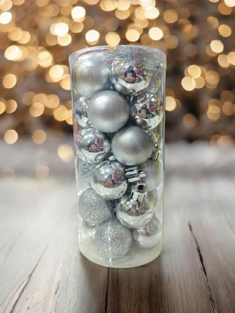Pelotitas chiquitas con glitter, platinadas y opacas. Ideal para un arbol chiquito. Quedaria luminoso y bien llamativo.
