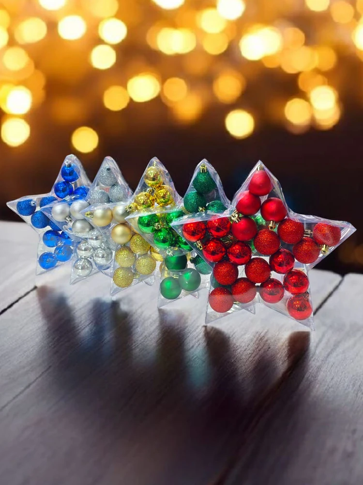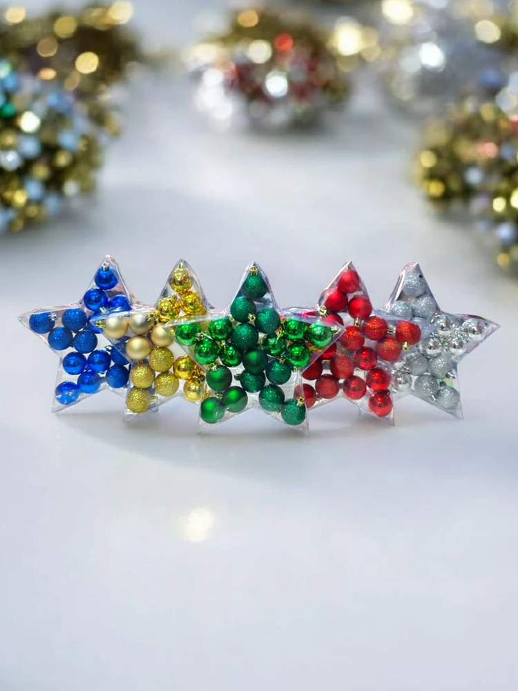 Bolitas navideñas pequeñas con glitter, opacas y platinadas. Ideal para un arbol pequeño y que quede bien llamativo y luminoso.