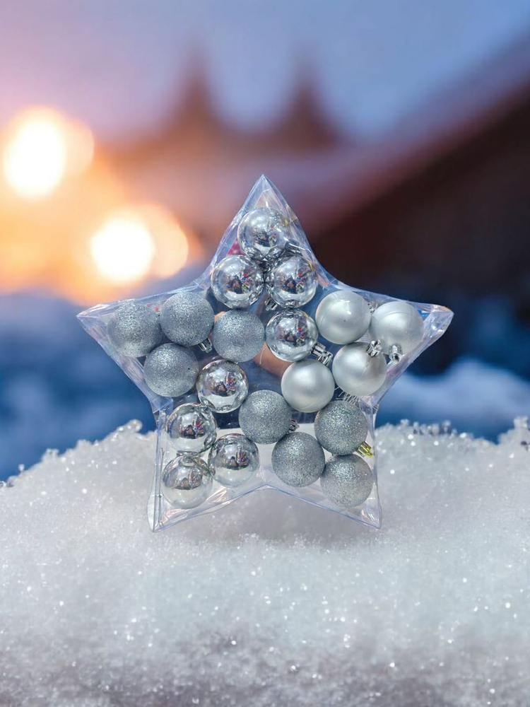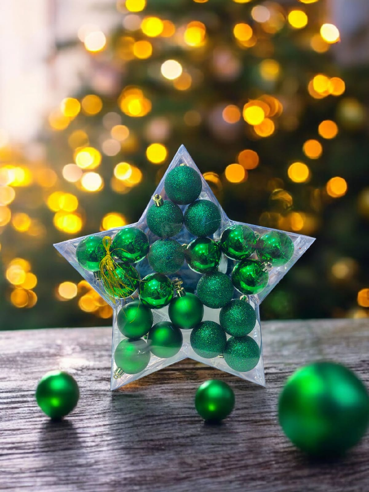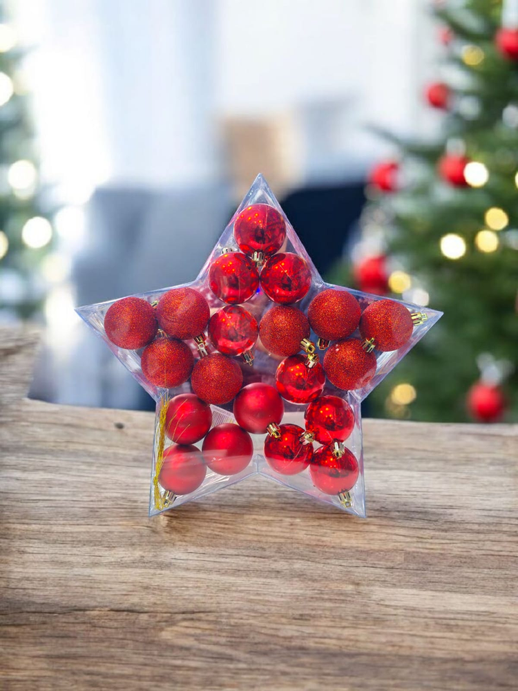 Bolitas medianas para un arbol mediano. Vienen con glitter, opacas y platinadas.