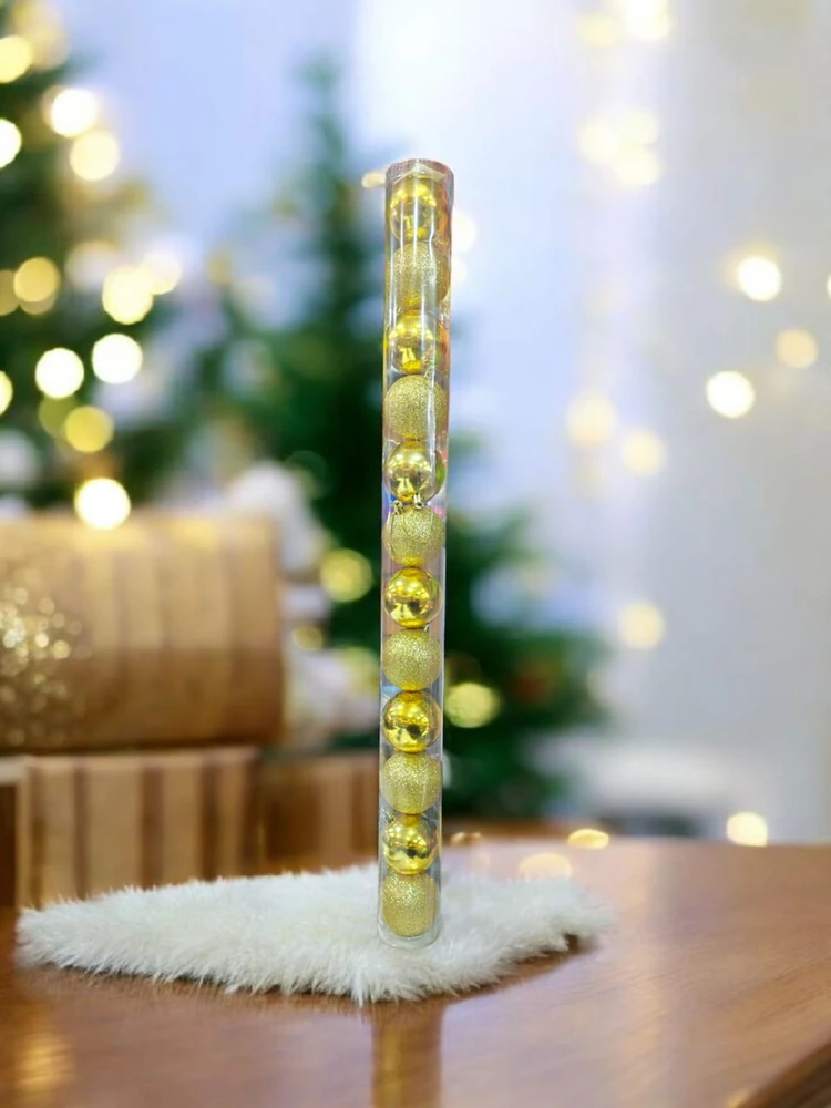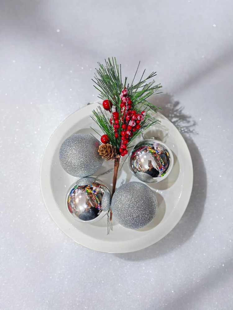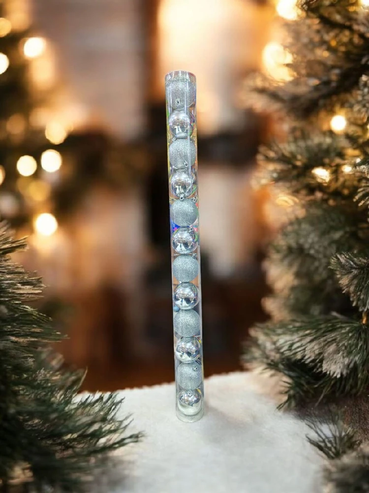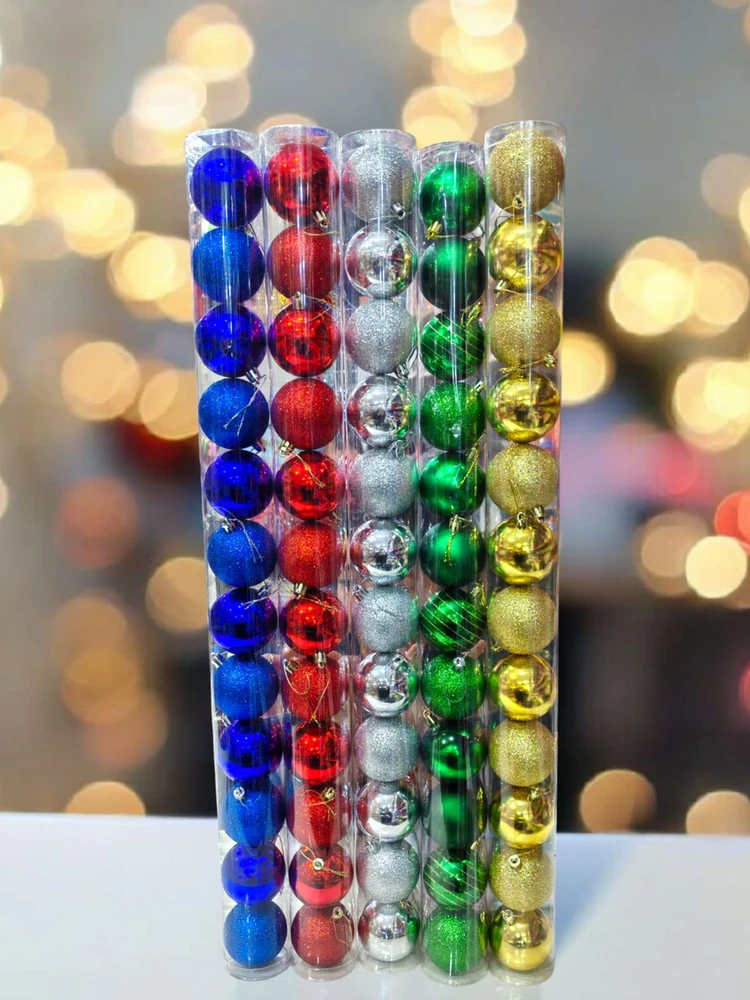 Bolas navideñas para decorar el arbol, vienen platinados y con glitter. Ideal para que quede brillante.