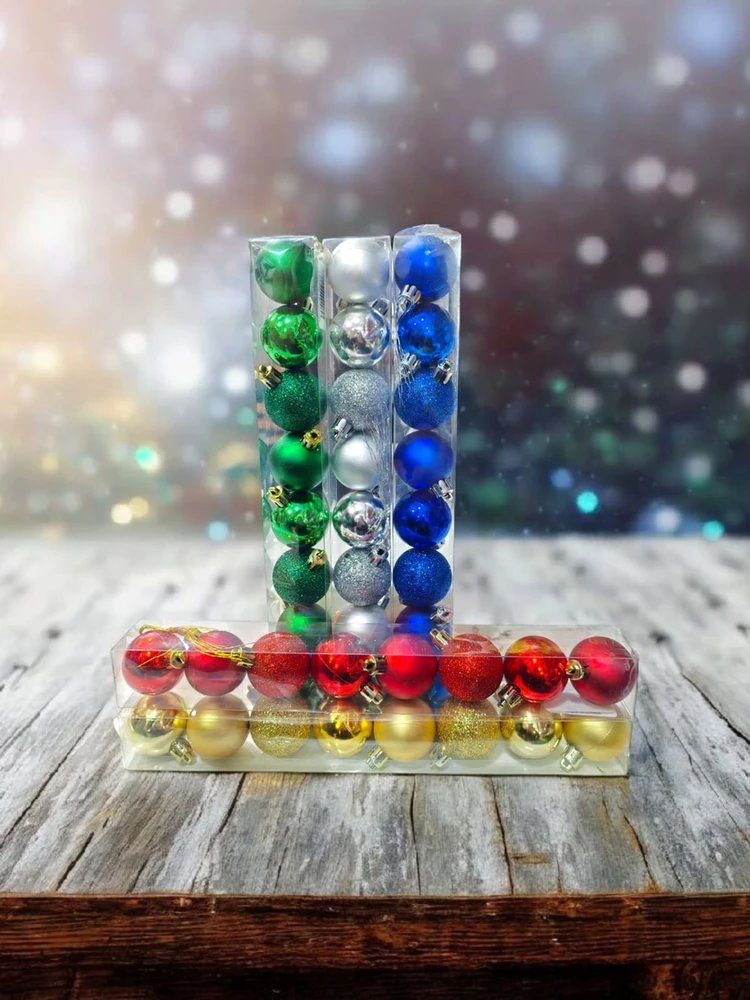 Bolitas chiquitas para decorar el arbol navideño, vienen en 5 colores y muy brillantes.