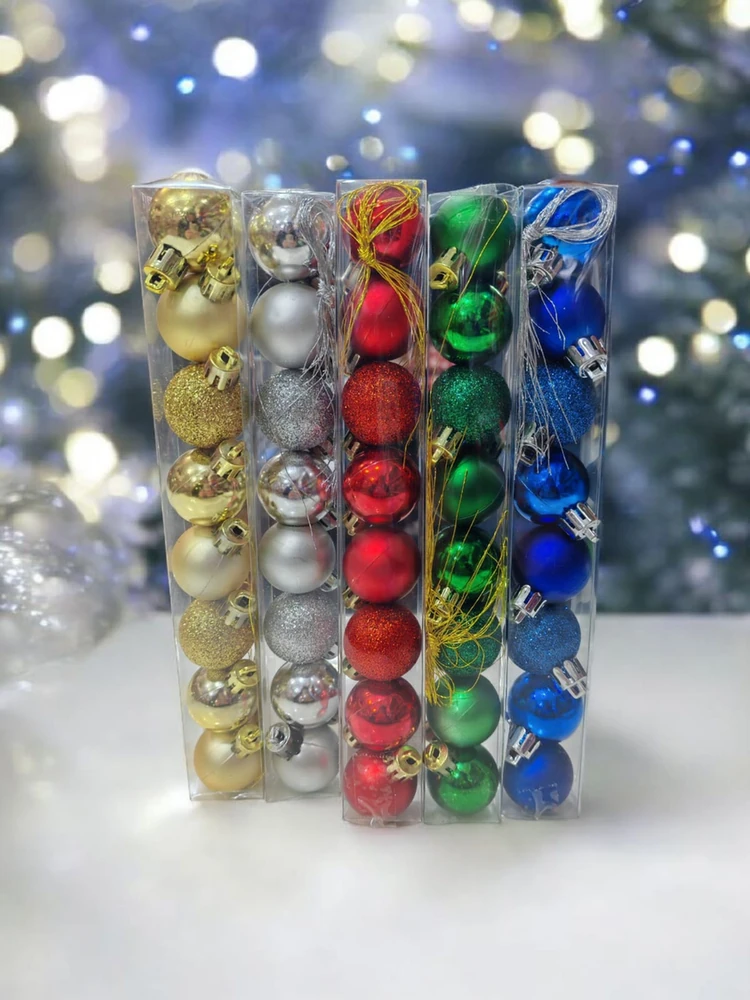 Bolitas de navidad chiquitas, para un arbol pequeño. Vienen con glitter, opacas y platinadas. Ideal para que quede luminoso y llamativo.