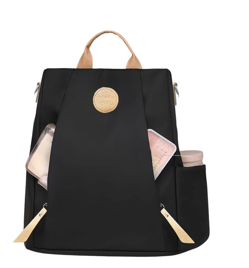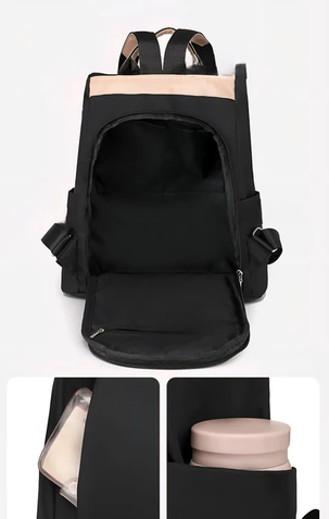 (Cuenta con un compartimiento amplio, tres bolsillos interiores, uno de ellos con cierre, dos bolsillos laterales y un bolsillo frontal con cierre. Permite guardar una variedad de objetos personales como computadoras, teléfonos móviles, carteras, y otros elementos esenciales. Equipada con correas diseñadas para un transporte cómodo).