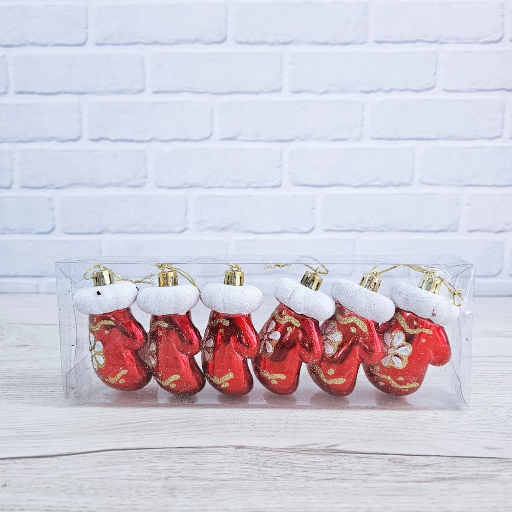 (Caja x 6U. Adornos navideños en forma de guante navideño en color rojo y blanco . Ideal para decorar tu arbolito)