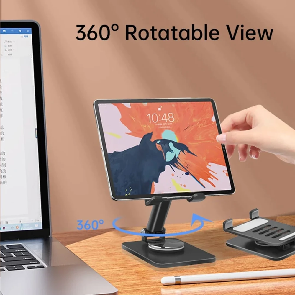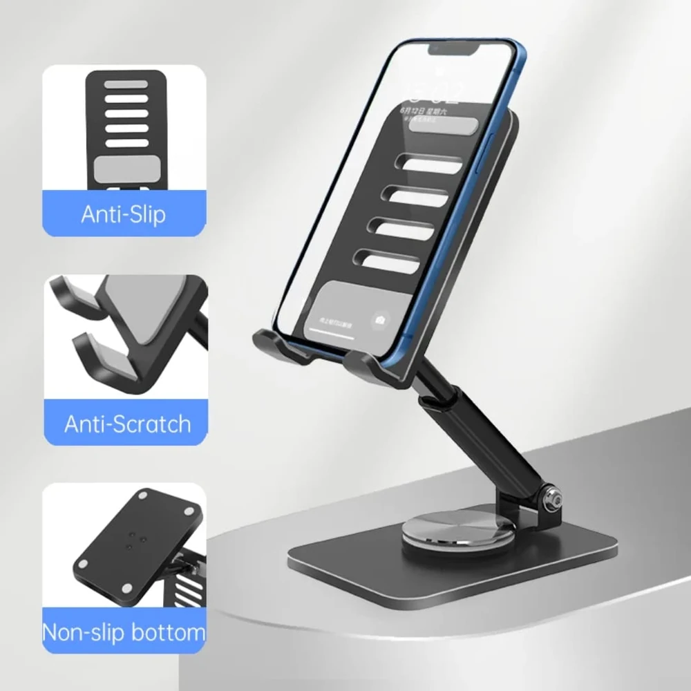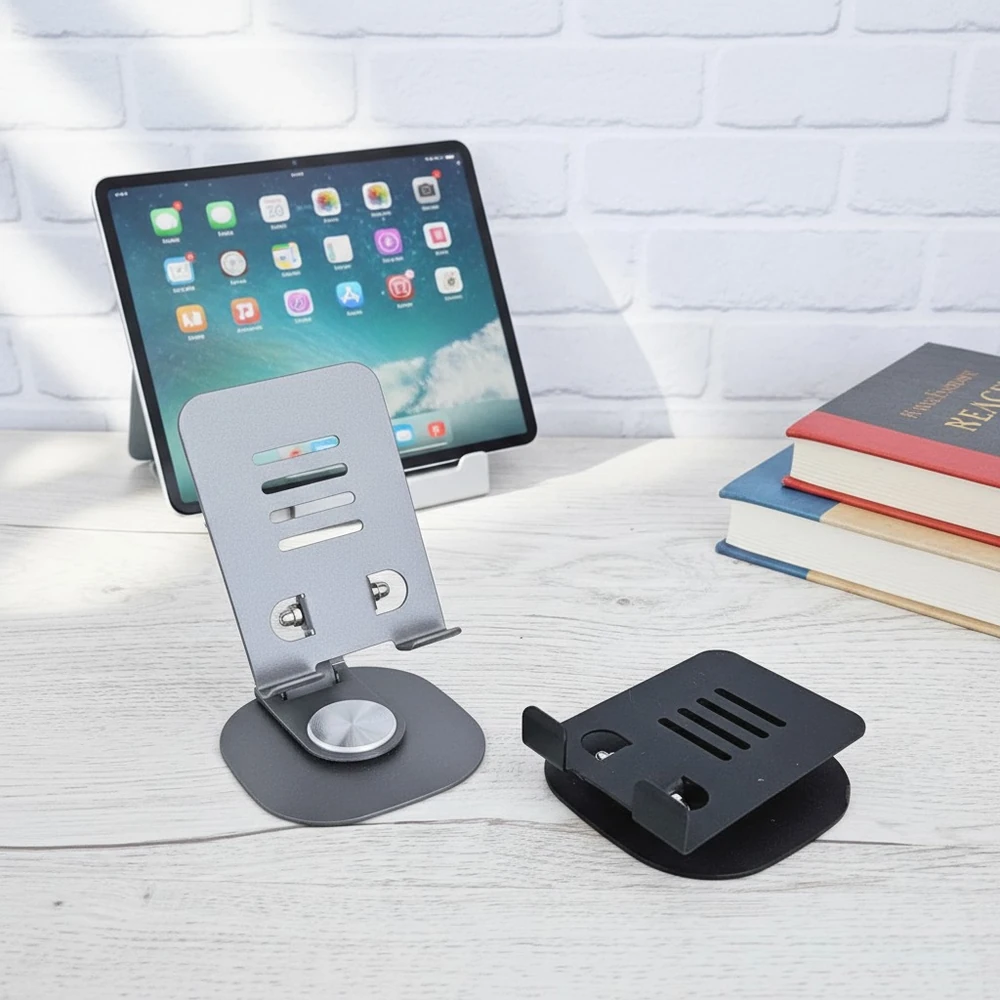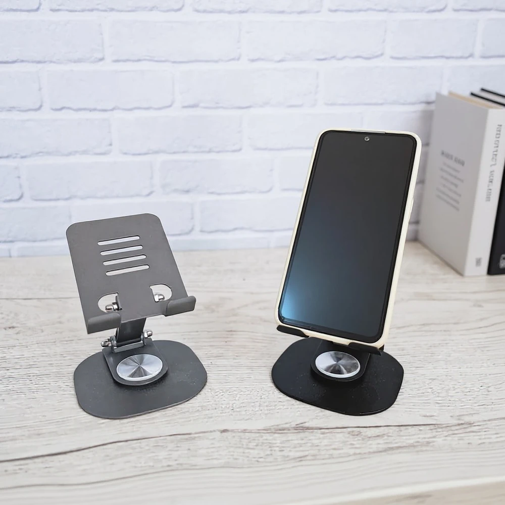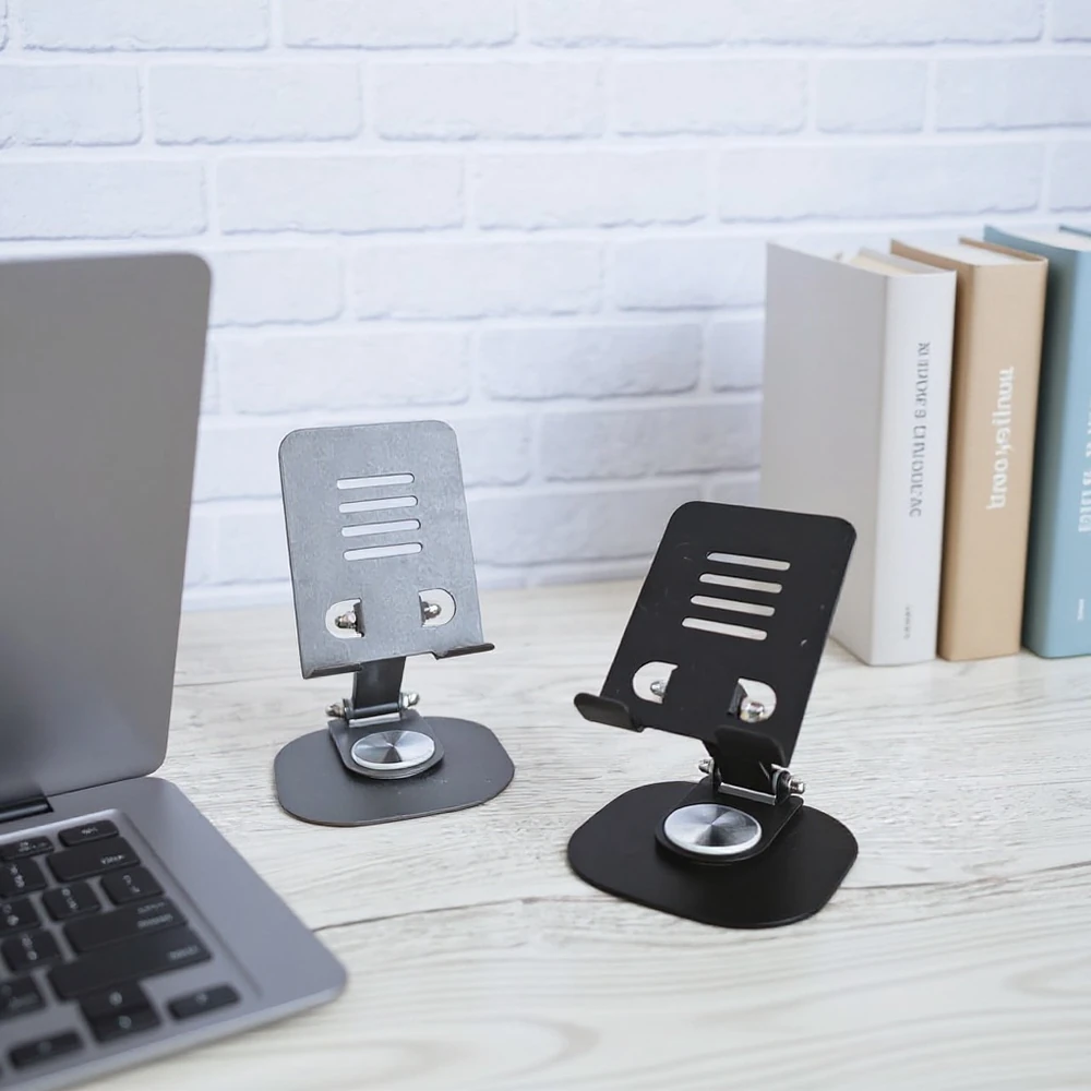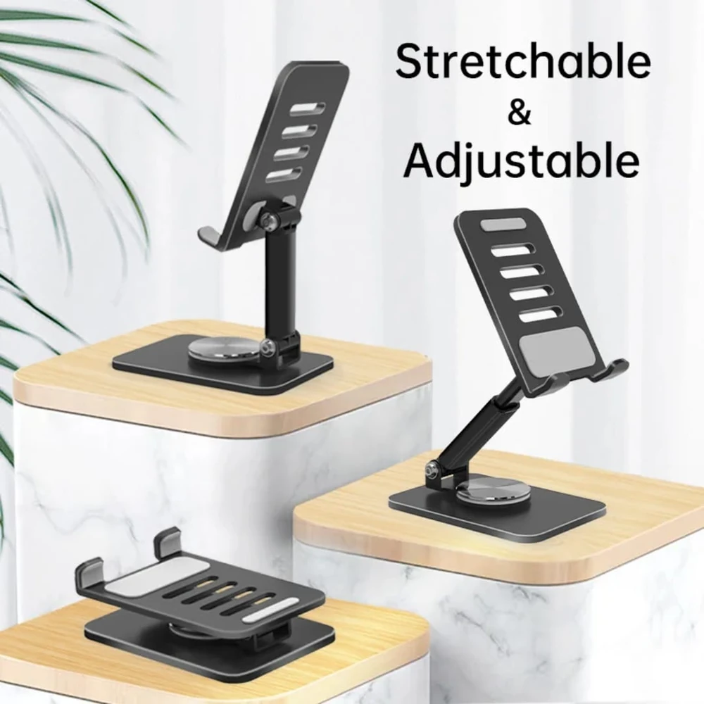 (Está diseñado con una base giratoria de 360 grados, altura ajustable y múltiples ángulos para colocar el dispositivo en la posición ideal. Su diseño compacto y ligero lo hace portátil, ideal para usar en el hogar, la oficina o mientras se viaja. Disponible en dos colores ).