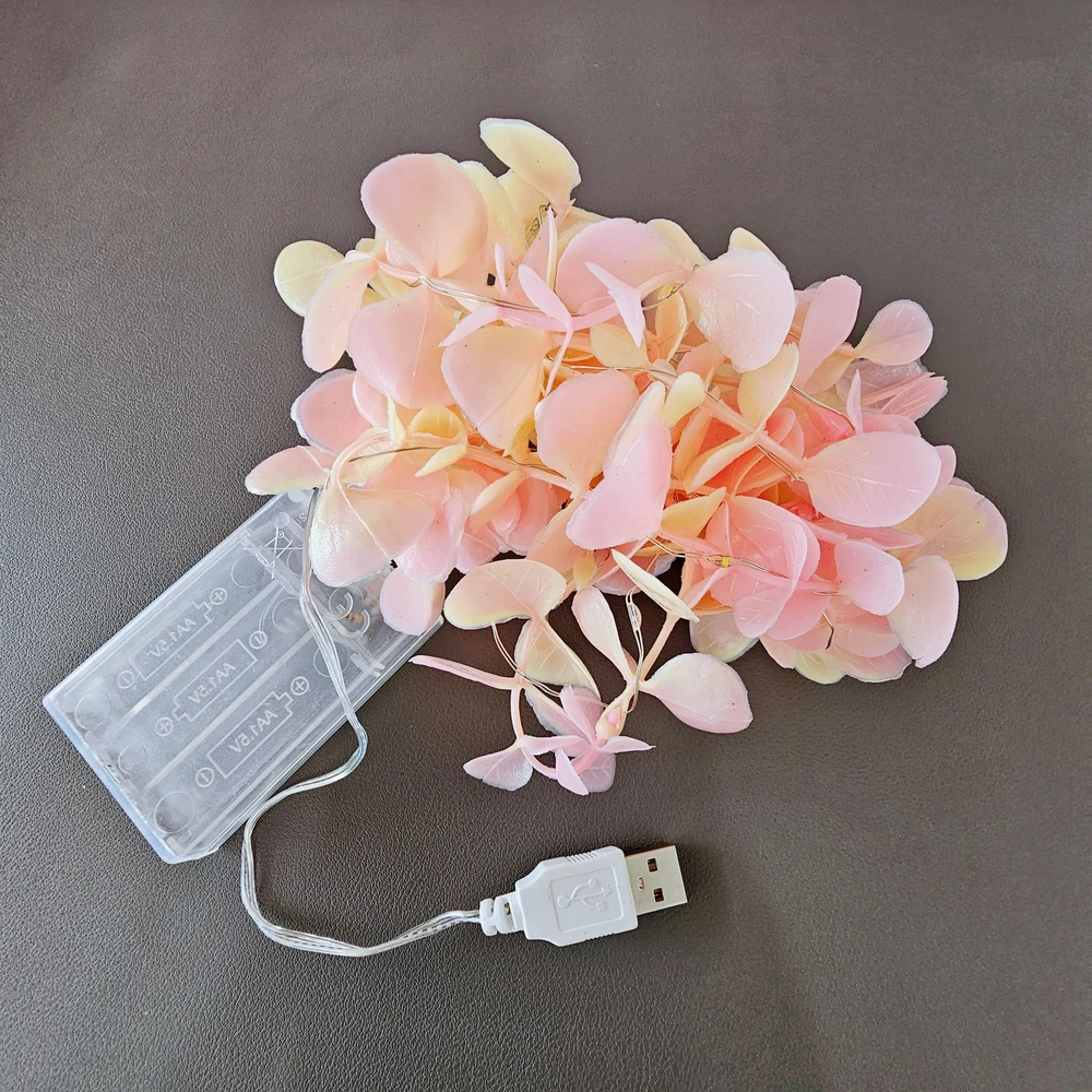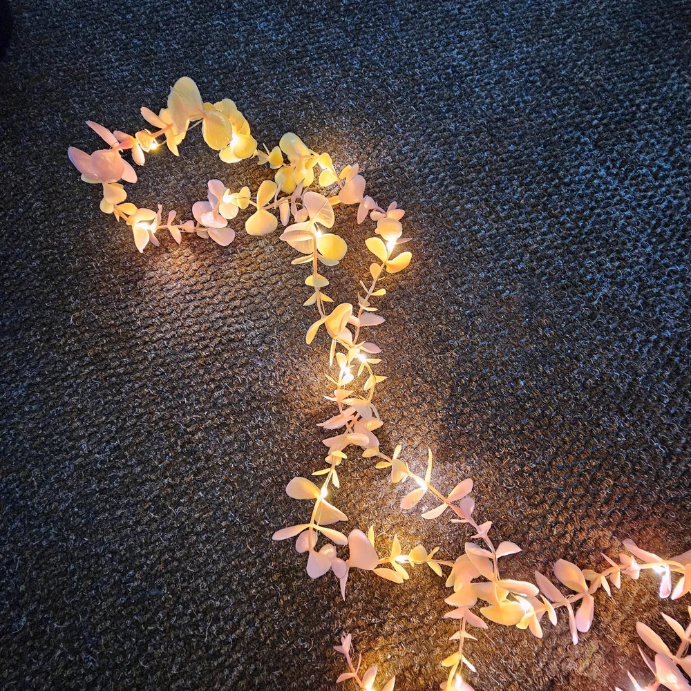 (Guirnalda de luces led con diseño de planta. Cuenta con un cargador a pila y posee una iluminación fría. Ideal para decorar tu hogar, oficina o comercio).