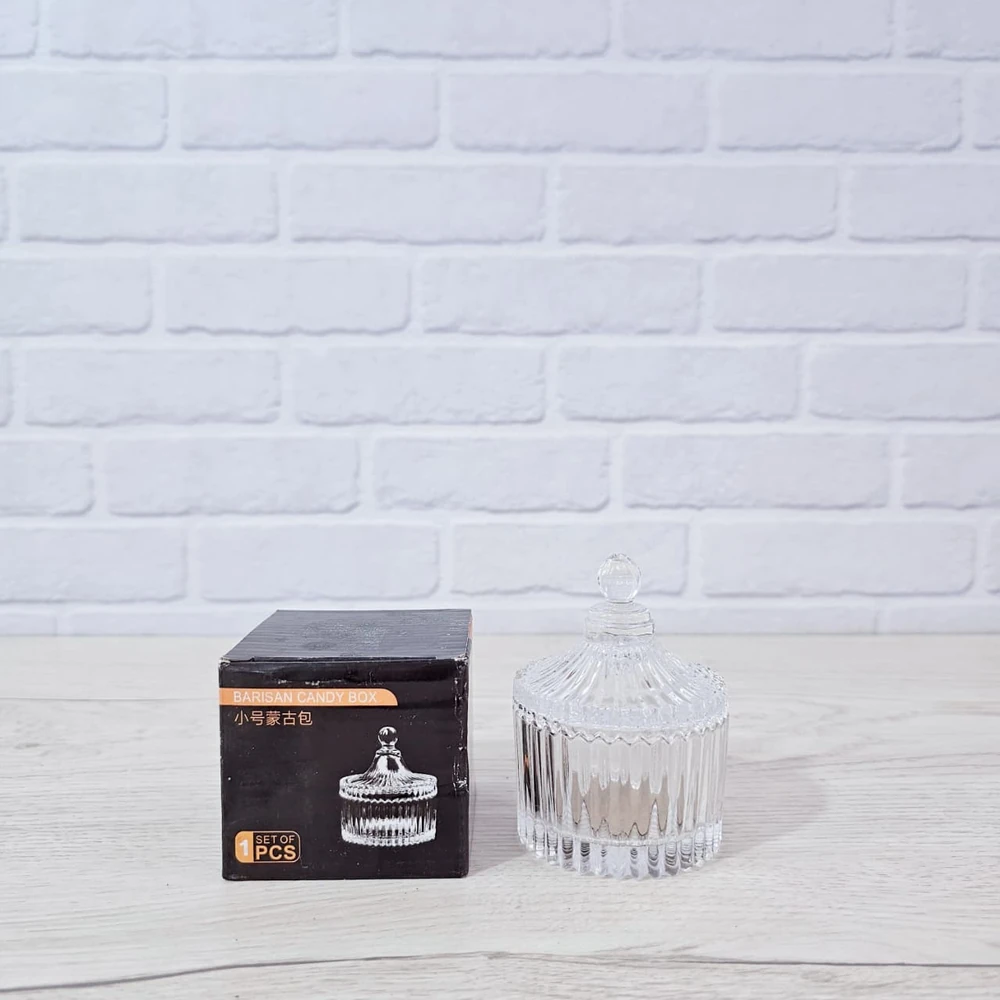 (Caramelera mini con delicado diseño, de vidrio. Ideal para usar como souvenir rellenándolo con caramelos, bombones o mas bien como decoración, apto como porta velas. Presentación en caja).