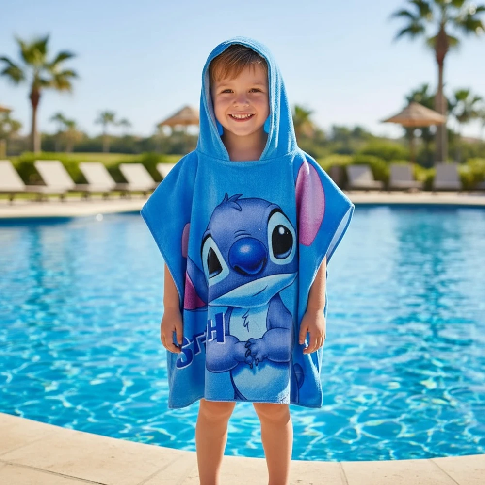 (Toallón con capucha ideal para que los niños disfruten de la salida de baño, cuenta con diferentes diseños de stitch)