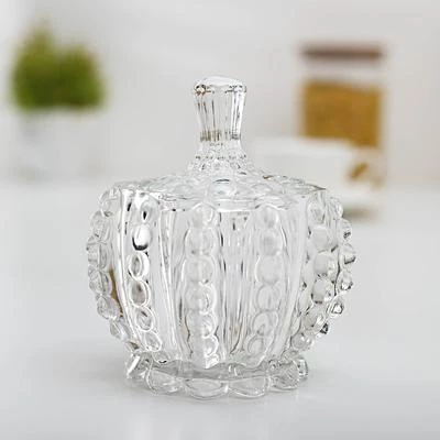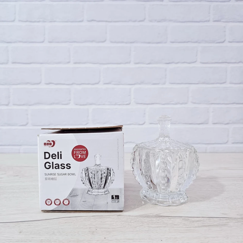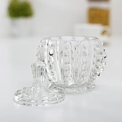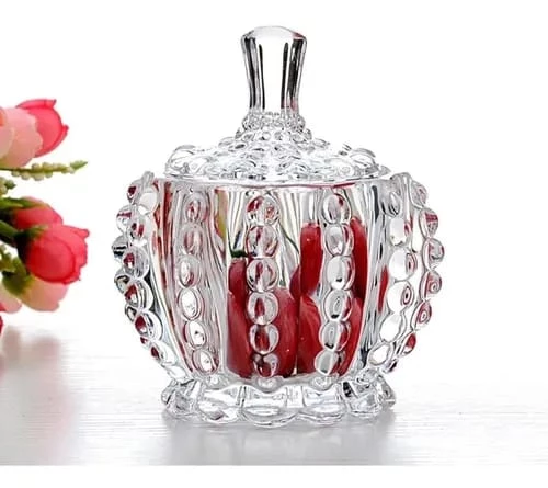 (Adorno de vidrio, estilo vintage con cuerpo festoneado; cristal transparente brillante duradero sin plomo; apto para alimentos y ideal para chocolates, dulces, azúcar o mermeladas. multiuso, souvenir, adorno, caramelera. Con caja.)