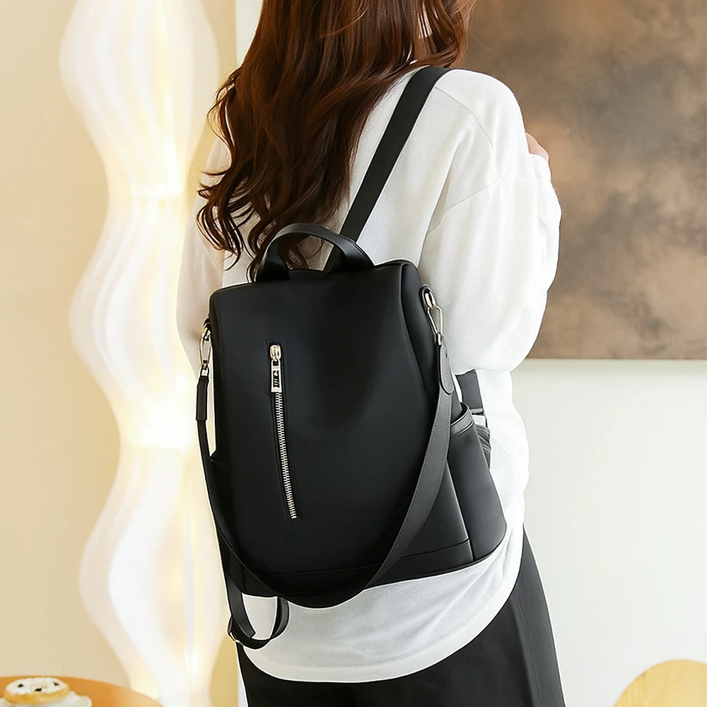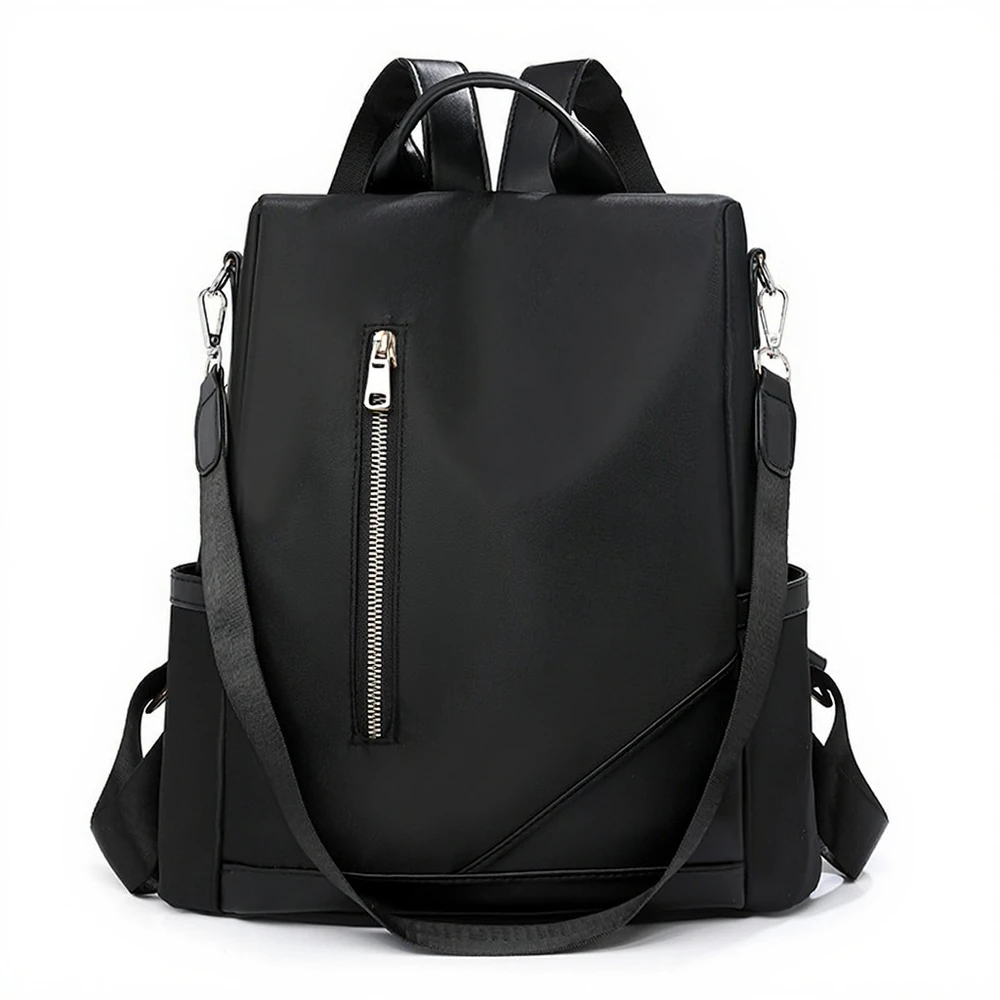 (Cuenta con un compartimiento amplio, tres bolsillos interiores, uno de ellos con cierre, dos bolsillos laterales y un bolsillo frontal con cierre. Permite guardar una variedad de objetos personales como computadoras, teléfonos móviles, carteras, y otros elementos esenciales. Equipada con correas diseñadas para un transporte cómodo).