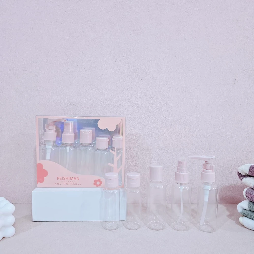(Cada set cuenta con 1 dispensador, 1 rociador, 3 frascos para cremas).