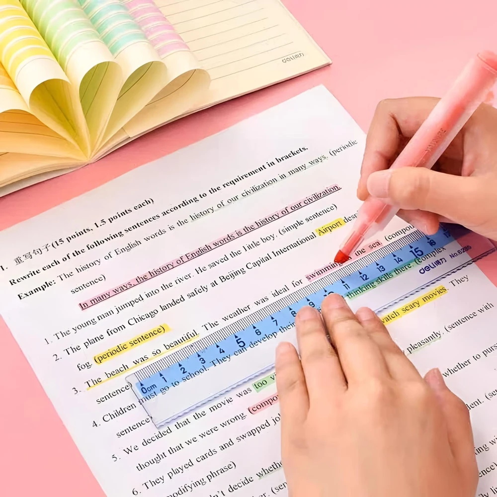 (Set de 6 resaltadores de gel sólidos CHOSCH . Son adecuados para diversas aplicaciones, como la decoración de diarios, calendarios y cuadernos. Cuentan con dos trazos dentro de la misma punta para ofrecer precisión y versatilidad al resaltar y subrayar).