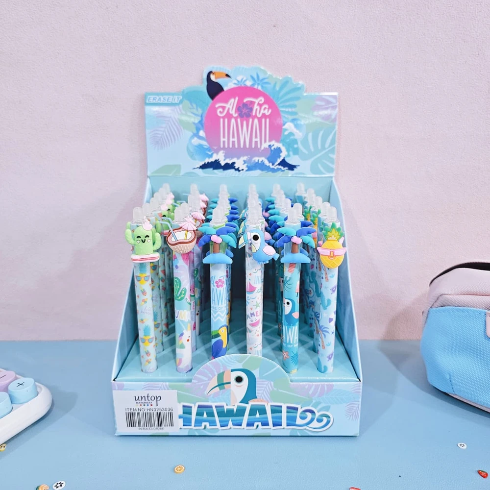 (Lapiceras de tinta azul con diseño atractivo y divertido los hace ideales como obsequio, tiene figuras como el tucán, cactus, palmera, cocos).