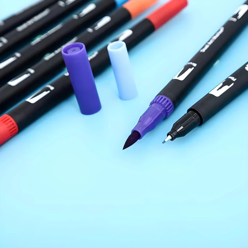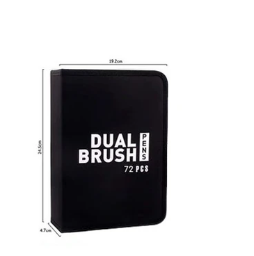 (Marcadores Dual Brush x 72 piezas. Contienen marcadores con doble punta, una es microfibra la otra es punta pincel; Incluye estuche organizador práctico, ligero y liviano y una amplia gama de colores que no se repiten).