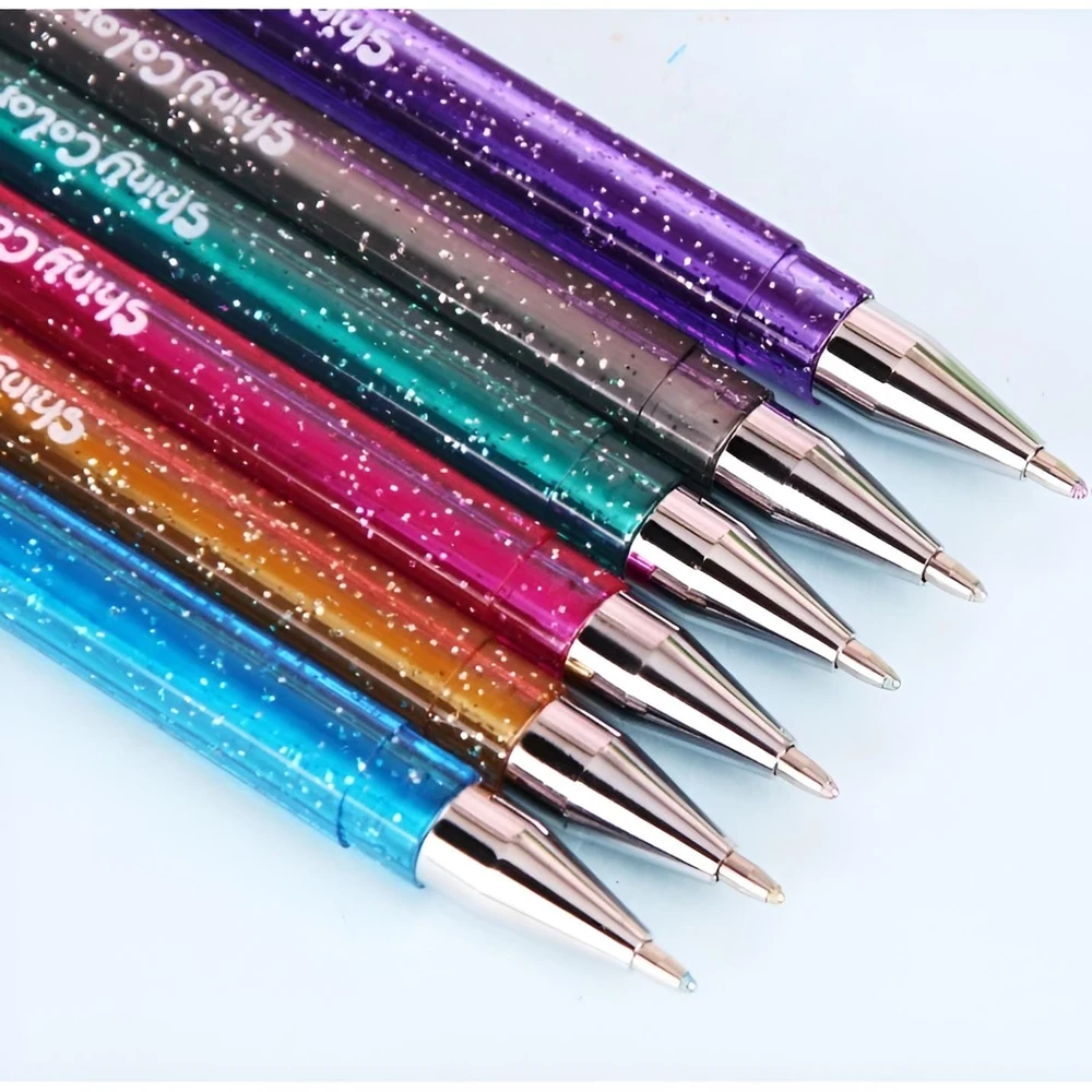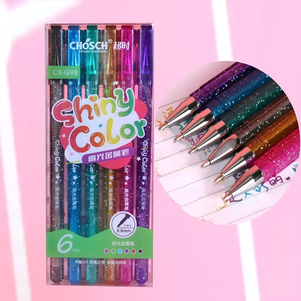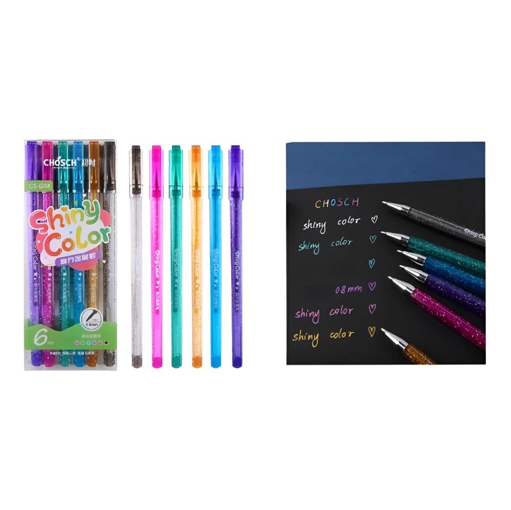 (Cada set trae 6 biromes de glitter de distintos colores. Su punta es de 0,8mm. Agrega diferentes colores a tus dibujos, anotaciones y bocetos).