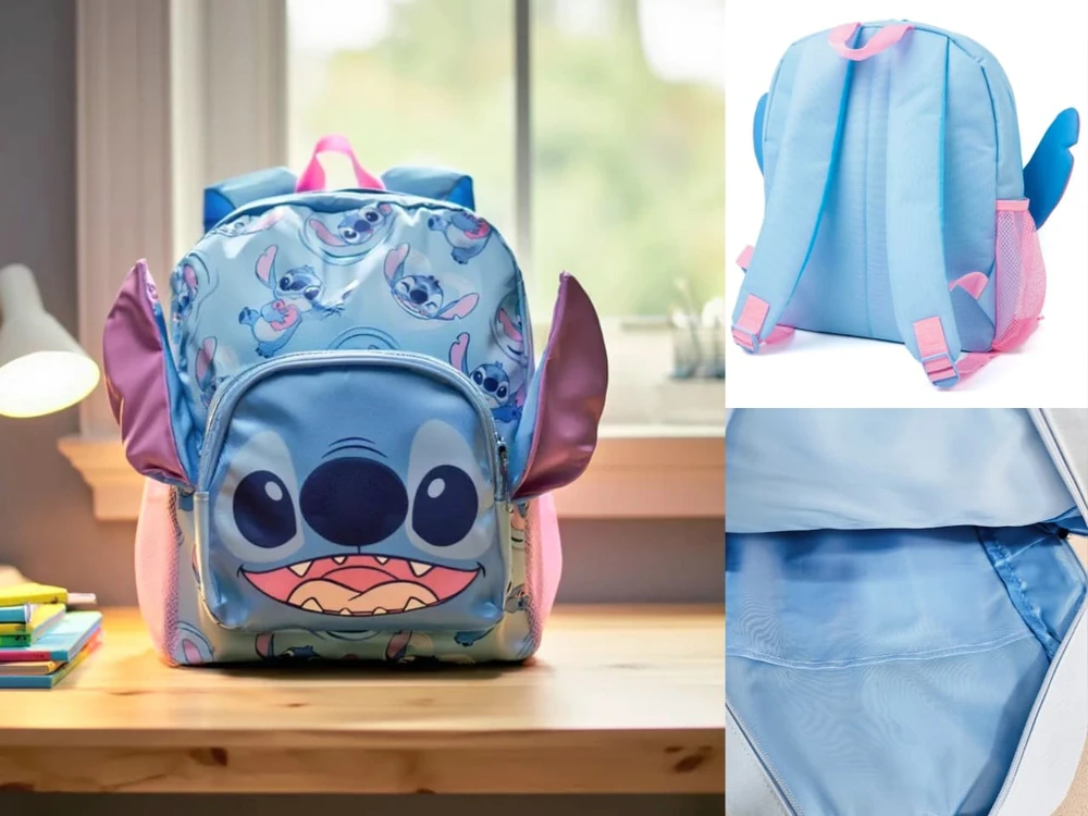 (Mochila Infantil de Stitch. Cuenta con bolsillo delantero, lateral e interno).