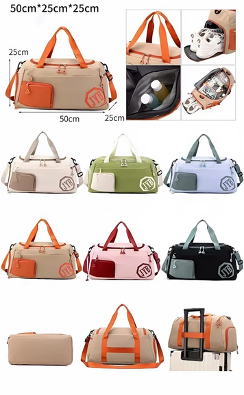 (Cuenta con un compartimento principal, dos bolsillos laterales (uno para calzado y uno multiuso), 2 bolsillos frontales y un compartimento interno para ropa húmeda. Incluye una tira ajustable removible. Ideal para usar en viajes y deportes).