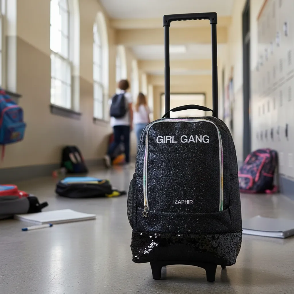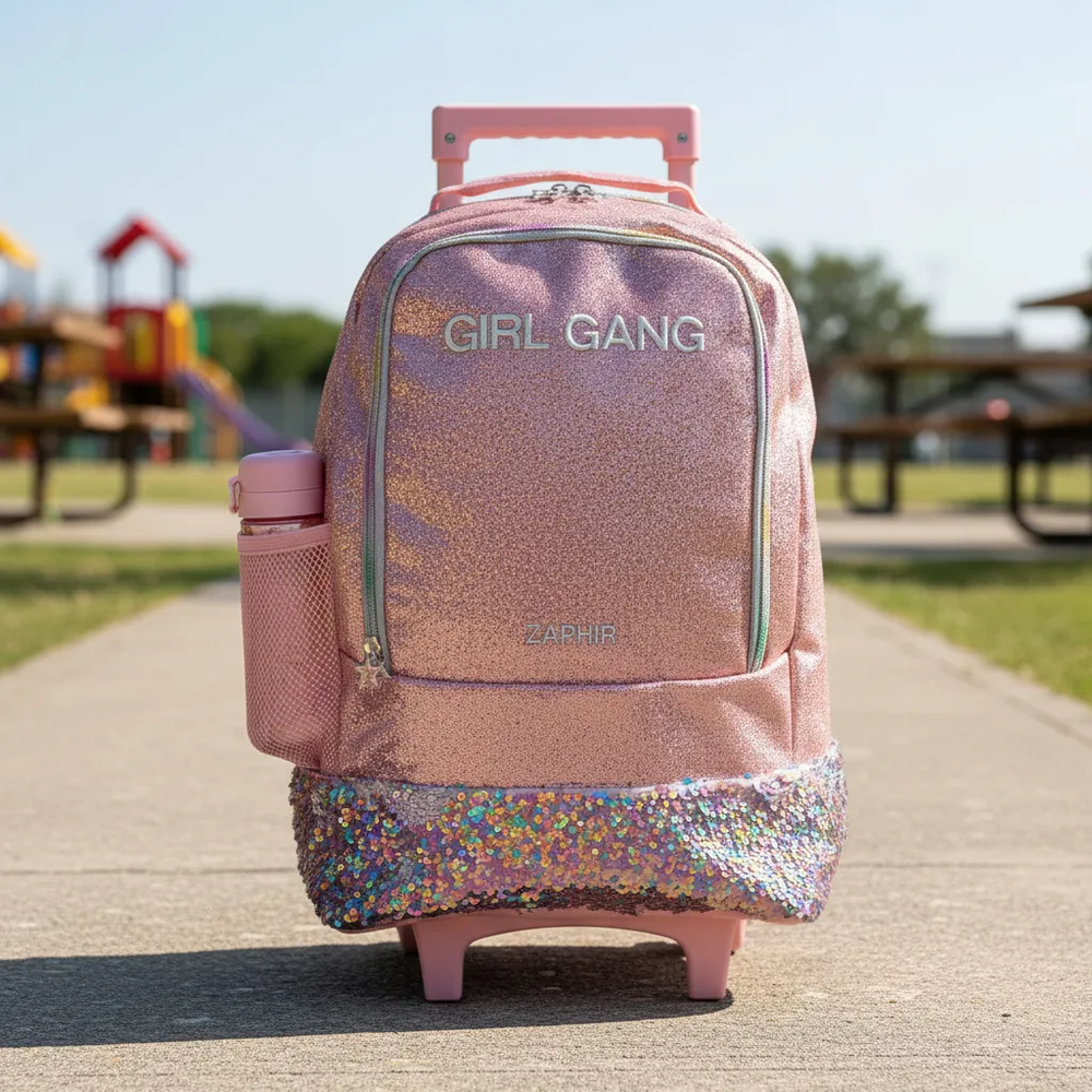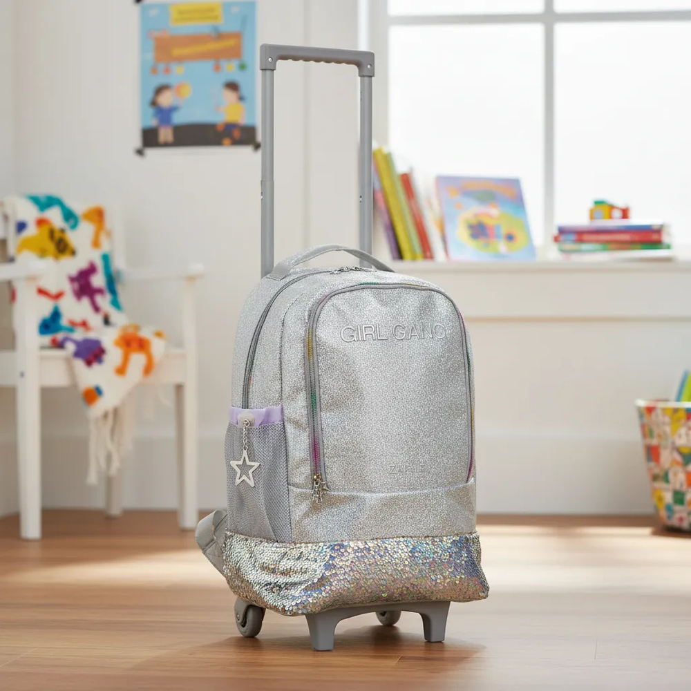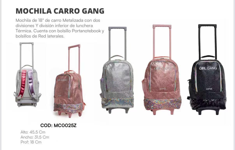 Mochila de 18pulgadas de carrito metalizada con dos divisiones y división inferior de lunchera térmica.