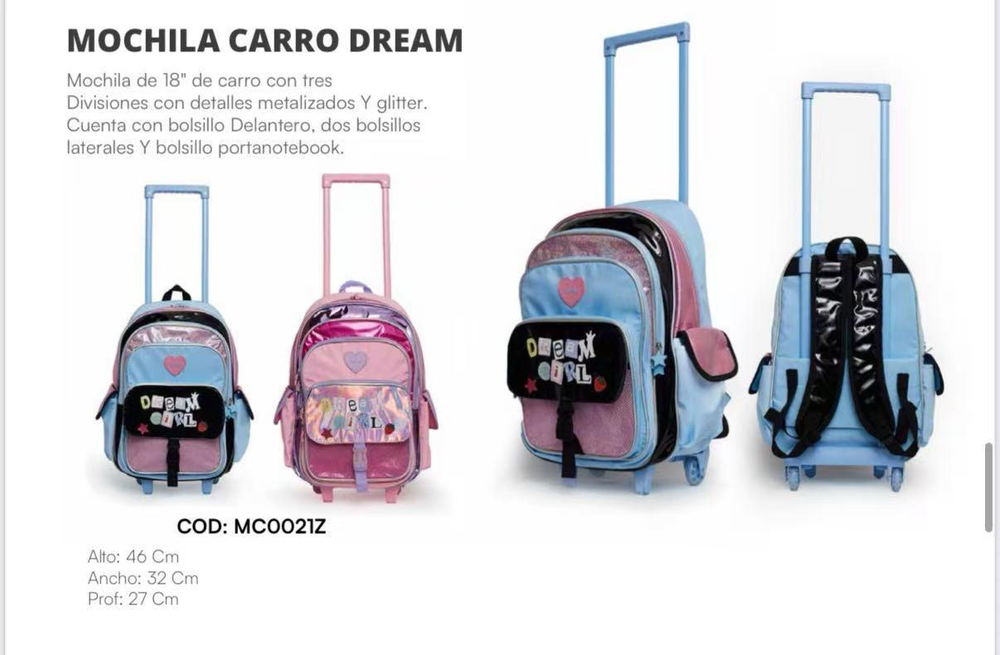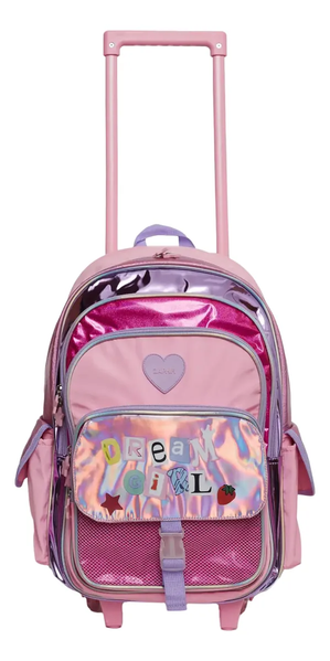 Mochila de 18pulgadas de carrito con tres divisiones con detalles metalizados y glitter.