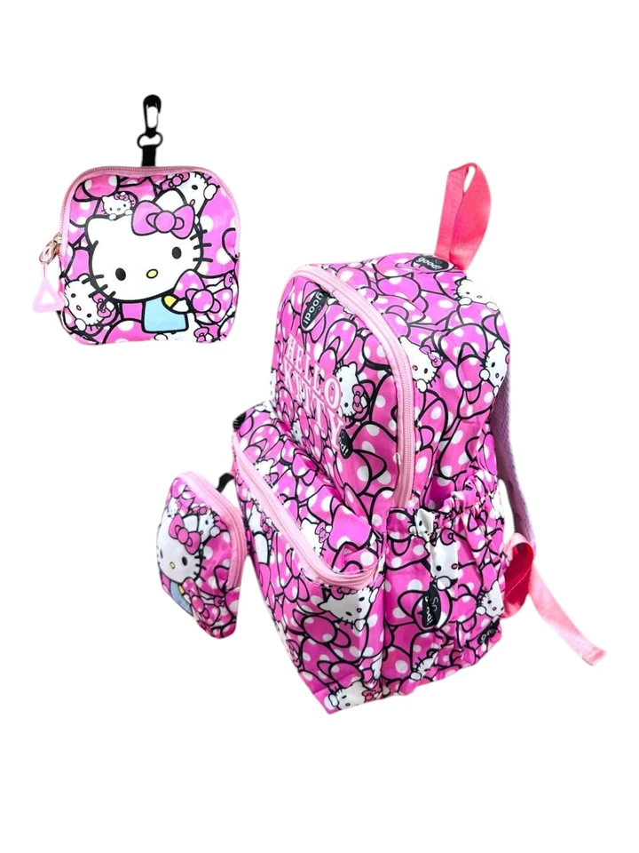 Una mochila escolar infantil que cuenta con 3 piezas más: